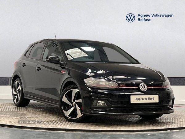 Belfast1 Previous Owner, Volkswagen Polo GTI Plus 2.0 TSI 200PS 6speed DSG 5 Door in Deep Black with 17" alloy wheels, privacy glass, factory 15mm lowered sports suspension with adaptive shock absorption, XDS electronic differential lock, GTI body styling pack, red brake callipers, manual air conditioning, darkened LED rear lights, LED headlights, power folding door mirrors, keyless entry with engine start/stop button, adaptive cruise control, Active Info Display 10.3" digital instrument panel, , DAB Radio, Apple CarPlay and Android Auto