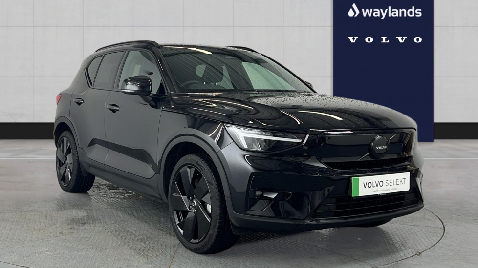 0 Previous Owners, ..Roof top. colour coordinated, 12.3inch driver display, 20 5spoke glossy black, 20 5spoke glossy black. rear, 5 seats, 9inch centre display, Adaptive cruise control, Adaptive power steering, Adjustable passenger seat, Afterrun parking climate, Air purifier and remote cabin precleaning, Alarm, Alcohol lock software (not available in the UK), Android Auto, Apple CarPlay, Autodimmed rear view mirrors, Automatic door locking, BLIS and Cross Traffic Alert, Bluetooth connection, Bodycoloured door handles with ground lighting, Charcoal headlining, Charcoal interior inserts, Charging station cable. 6m, Comfort front seats, Connect Suede textile/Microtech upholstery, Cutting Edge aluminium decor, Digital Audio Broadcasting (DAB+), Digital owners manual, Door mirror covers. colour coordinated, Double locking, Dualstage airbags, EX40 aluminium front tread plates, Electric cabin heater and cooler, Emergency brake light, Firstaid kit, Fixed rear head restraints, Fog lamps, Foldable load floor with cargo divider and grocery bag, Folding bag hook, Front centre armrest, Front load compartment, Glossy black tunnel console, Google Assistant. Google Maps and Google Play Store, Heat pump, Heated front seats, Heated grill emblem, Heated rear seats, Heated steering wheel, High Performance audio system, Highgloss black side window trim, Hill Descent Control, Hill Start Assist, Humidity sensor, ISOFIX mounting points. rear seat, Illuminated vanity mirrors, Inflatable Curtain, Intelligent Speed Assist (ISA), Interior illumination. high level, Keyless entry with handsfree power tailgate, Knee airbag. driver side, LED headlights, Lane Keeping Aid and Lane Departure Warning, Lockable wheel bolts, Manual cushion extensions. driver and passenger, Mechanical release second seat row, Oncoming Lane Mitigation, Park assist camera. rear, Park assist. rear and front, Passenger airbag cutoff switch, Pilot Assist, Plug & Charge, Power 4way lumbar support, Power child safety lock, Power driver seat with memory, Power retractable door mirrors, Power tailgate, Protection net, Protective cap kit. Matt Tech Grey, Rain sensor, Rear Collision Warning, Rear centre armrest, Remote key, Road Sign Information, Roof rails. glossy black, Safety belts, Sculpted gear shift, Shiftbywire single speed transmission, Side impact protection, Slippery road alert, Steering wheel remote control, Tailored sport steering wheel. Charcoal, Tempered side and rear windows, Temporary mobility kit, Textile