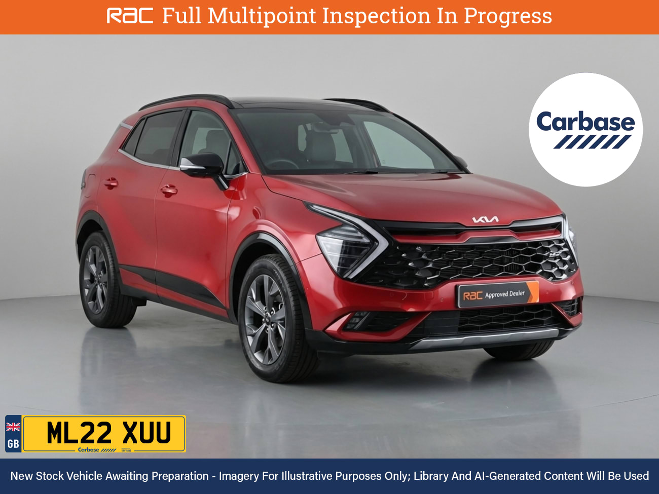 1 Owner From New With Service History (Last Stamp At 8k) And RAC MultiPoint Inspection at 11k Miles Embrace UltraAthletic Suv Style In The Sportage, Explore It InStore On A Test Drive. Led Adaptive Headlights, Electrically Tilting And Sliding Glass Sunroof, 360 Degree Camera, 19 Inch Alloy Wheels, Rear Privacy Glass, Led Front Fog Lights, Lumbar Support, Black Headlining, Climate Control, Front And Rear Electric Windows, Heated Front Seats, Heated Steering Wheel, Leather Trimmed Steering Wheel, 8 Inch Display, Electrically Folding And Adjustable Door Mirrors, Rain Sensing Windscreen Wipers, Cruise Control, 12V Power Socket, 40/20 Split Folding Rear Seats, Android Auto, Apple Carplay, Bluetooth Wireless Smartphone Connectivity, Front And Rear Radar Type Parking Sensors, Rear Assist Camera, Trip Computer, Usb Input, Hill Hold Assist, Lane Assist, Date Of First Registration April 2022. Drive Into A Low Emissions Zone With This Euro 6, ULEZ & CAZ Compliant Car Were an RAC Approved Dealer Where All Vehicles Come With a Full Multipoint Check and Warranty. At Carbase, We Have 3 Car Stores Across Bristol and Somerset, Open Daily. Thinking of Selling Yours We Want Your Car Quick and Easy, Trade In or Sell. Personalised Finance Deals for All ESign and Drive Away the Same Day! With Thousands to Choose From, Find Your Next Car or Van With Carbase. A Fully Refundable £99 Reservation Holds Any Vehicle for 3 Days. InStore Deposits Up to £250 Can Be Paid Through Debit or Cred...