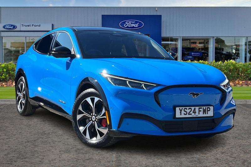 Insurance Group 40, 10.2 full digital cluster and 15.5 central touch screen, 360 degree view camera, Advanced active park assist, Applink remote control system, BLIS (Blind Spot Information System) with cross traffic alert, Distance alert system, Electric power steering, Emergency services call system, Ford pass connect embedded modem, Front and rear parking sensors, Hands free tailgate, Intelligent adaptive cruise control with stop and go + lane centering, Lane departure warning with lane keeping aid, Next generation SYNC with connected navigation+DAB and natural voice search, Selectable drive modes active, whisper and untamed, Trip computer, Wireless device charging pad, 3rd brake light, Body colour bumpers, Body colour power folding door mirrors with Mustang logo projection puddle lamps, Brace front grille design, Daytime running lights, Fixed full panoramic roof, LED headlamps with reflector technology, LED signature tail lights, Privacy glass, Quickclear heated windscreen, Rear side wing doors, Rear wiper, Side cladding and wheel arches in MIC black, 3 seat bench in 2nd row, 8 way power driver and passenger seats with lumbar fore/aft/up/down/recline, Dual electronic automatic temperature control, Front headrests, Front trunk, Heated driver and front passenger seats, Heated steering wheel, One pedal drive, Perforated full sensico artificial leather upholstery, Rear head restraints, Single front passenger seat, 3 point rear seatbelts, ABS, Child locks on rear doors, ESP, Evasive steering