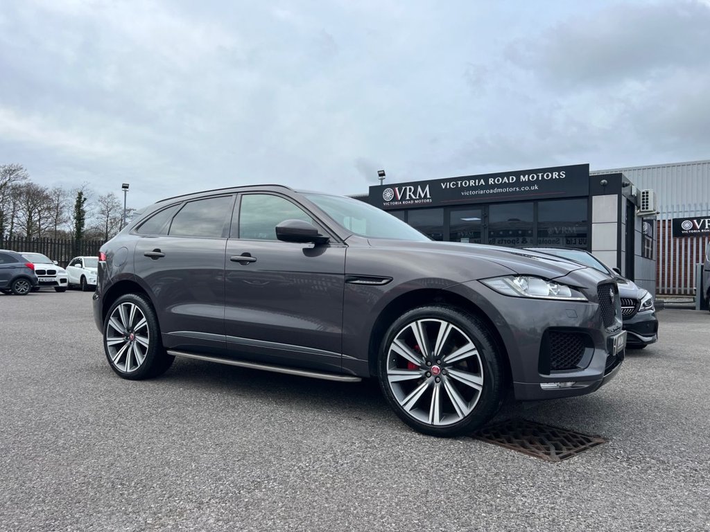 SWANSEA2 Previous Owners, This 2017 Jaguar F PACE V6 S offers exceptional value with its remarkably low mileage of just 57,587 miles for its age. This Four Wheel Drive model is powered by a 3.0 litre petrol engine and meets Euro 6 emissions standards. Inside, youll find comfortable heated front seats and the convenience of keyless entry. For your entertainment, it features a Meridian Sound System with 380W of power, and parking is made easier with both front and rear parking aids. Reversing Camera, Panoramic Roof, Heated Front Screen, Softclose Tailgate, Courtesy Blinds (Rear) and the Carbon Quicksilver Exhaust from Factory gives the car quite a sought after specification. This model has been serviced at Jaguar throughout its ownership with no expense spared for a little peace of mind. The F PACE V6 S stands out with its impressive acceleration, reaching 060mph in a swift 5.1 seconds, demonstrating its dynamic performance. Its large boot space offers practicality for all your needs, and it benefits from a low insurance group, making it an economical choice. With a towing weight of 2400 kg, this Jaguar is well equipped for a variety of tasks. Welcome to Victoria Road Motors, Buy with confidence from a reputable independent used car dealership here at VRM, all vehicles have walk round videos uploaded to our website, enabling you to see the condition of each vehicle in a bit more detail. All vehicles come with a new MOT along with Oil & Filter Services (Extended mechanical options also available!). We offer extended warranty options via our trusted partners at Autoguard Warranties, complementary Break Down Cover is active on all vehicles for additional peace of mind. Our experienced team are here to help you navigate your next purchase, from Competitive Part exchange, Finance, Warranty and Aftersales our friendly team are here to assist. Extensive handovers as standard to go through your new vehicle with you in our handover bay. You will receive all your paperwork in a sales pack, while we complete everything for you on the day, all you need to do is consult your insurance! See something you like? We are here to Help. .Panoramic Roof, Meridian Sound System, Satelitte Navigation, Reversing Camera, Heated Seats, Touch Pro Navigation Pack with Meridian Digital Surround Sound System 825w, Lane Keep Assist and Driver Condition Monitor, Advanced Parking Assist Pack with Surround Camera System, Powered Gesture Tailgate, 10 Way Sports Seats with Driver Memory, Sliding Panoramic Roof, Privacy Glass, 22in Alloy Wheels 9 Spoke Style 9006 with Grey Diamond Turned Finish, 10Way Electric Front Seats, 2Zone Climate Control, 20in Alloy Wheels 5 Spoke Style 5035 with Grey Diamond Turned Finish, 3Flash Lane Change Indicators, 350mm Front Brakes, 402040 Split Fold Rear Seat, 5in Display with Instrument Panel, ABS Antilocking Braking System, AEB Autonomous Emergency Braking, ASPC All Surface Progress Control, Adaptive Dynamics, Airbags Front Side, Airbags Full Length Side Window Curtain, Ambient Interior Lighting, Approach Illumination, AutoDimming Power Fold Heated Door Mirrors with Approach Lights, AutoDimming Interior Rear View Mirror, Bluetooth Audio Streaming, Bluetooth Telephone Connectivity, Brake Pad Wear Indicator, Bright Metal Pedals, Centre Console Side Stowage, Centre Console Storage Surround Finishers Satin Chrome, Centre Console with Armrest, Configurable Dynamics, Cruise Control with Speed Limiter, Digital Audio Broadcast DAB Radio, Door Mirrors Body Coloured, Door Trim Luxtec, Dual Tailpipes with 84mm Finishers, Dynamic Stability Control and Traction Control, Dynamic Volume Control, EBA Emergency Brake Assist, ECO Driving Style Assistant, EPAS Electric Power Assisted Steering, EPB Electronic Parking Brake Drive Away Release, Ebony Morzine Headlining, Electric Windows Front and Rear with OneTouch OpenClose and AntiTrap, Front Airbags with Passenger Seat Occupant Detector, Front Fog Lights, Front Headrests S Branded Embossing, Front Parking Aid, Gloss Black Roof Rails, Gloss Black Side Window Surround, Grained Black Radiator Grille with Satin Chrome Surround, Green Tinted Glass, Hazard Lights Under Heavy Braking, Heated Front Seats, Heated Front Windscreen, Heated Rear Window, Hill Launch Assist, Hook in Loadspace, ISOFIX Rear, InControl Apps, Interior Front Door Handles with Separate Locking Switches, Jaguar Script and Leaper, Jaguar Tyre Repair System, JaguarDrive Control, Keyless Entry, LED Tail Lights, Lane Departure Warning, Loadbay Luggage Tie Downs, Lockable Glovebox with Jaguar Script Finisher, Luxtec Wrapped I