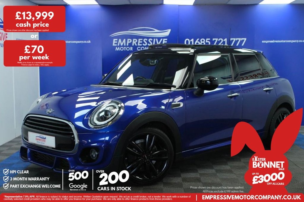 Merthyr TydfilInsurance Group 20, ****HOT HATCH**** Just in! This Stunning 2019 MINI HATCH 1.5 Cooper Sport Hatchback 5dr Petrol Steptronic Euro 6 (s/s) (136 ps) Finished In Blue! 52,440 Miles 1.5L Petrol Automatic 17" Gloss Black Wheels Parking Sensors Sliding Panoramic Roof Keyless Start JCW Seats Stop Start Heated Seats Traction Control System Automatic Climate Control System Ambient Lighting Bluetooth Satnav Automatic LED Headlights Voice Assistant Speed Limiter Cruise Control Automatic Window Wipers.12V Socket in Centre Console, 17in Alloy Wheels Track Spoke in Black, 3 Point Seatbelts on all Seats, 4 Lashing Eyes in Luggage Compartment, 6 Speakers in Front Door Trims and Underneath Front Seats, 6.5in Screen with LED Ring, Air Conditioning Manual, Airbags, Alarm System, AntiLock Braking System ABS, Automatic Headlight Activation Switch, Bluetooth for Compatible Mobile Phone with Audio Streaming, Bonnet Stripes Black, Carbon Black Colour Line Knee Roll and Door Armrests, Chrome Highlights, Comfort Pack, Cruise Control with Brake Function, Cup Holders, Darkened Rear Glass, DinamicaCloth Carbon Black, Door Storage Compartments, Dynamic Brake Lights, Dynamic Stability Control DSC, Electric Windows, ElectroMechanical Steering with Speed Dependant Steering Assistance, Electronic Vehicle Immobiliser, Exhaust Tailpipe Left with Chrome Finisher, FM Tuner and DAB Digital Radio, Foldable Rear Seats 6040, Front and Rear ISOFIX including Front Passenger Airbag Deactivation, Fuel Filler Cap in Body Colour, Glove Compartment, Headliner Anthracite, Heated Rear Window, Heated Windscreen Washer Jets, Instrument Cluster, Interior Lighting, Interior Surface Hazy Grey, John Cooper Works Aerodynamic Kit, John Cooper Works Leather Steering Wheel, John Cooper Works Roof Spoiler, John Cooper Works Sport Seats, Leatherette Gearshift Lever and Handbrake Gaiters, LED Headlights with Closed Ring as Daytime Driving Lights, LED Reading Lights Vanity Mirror Lights Front Footwell Lights Spotlights on Front Seats, Mechanical Seat Adjustment, MINI ECall, MINI Logo Projection on Floor from Drivers Exterior Mirror, MINI TeleServices, Model Logo Cooper on Right of Tailgate, Multifunction Controls for Steering Wheel, Navigation Pack, OnBoard Computer, Panoramic Glass Sunroof, Performance Control, Radiator Grille Chrome Border with Black HighGloss Slats, Rain Sensor Window Wipers, Rear Fog Light, Rear LED Lights with Union Jack Design, Rear Window Wiper, Roof and Mirror Caps Black, Roof and Mirror Caps BodyColour, Side Scuttle Panels with Integrated Indicators, Single Tone Fanfare Horn, Starlight Blue, StartStop Toggle including Keyless Go, Steering Column Height and Length Adjustment, Sun Visor with Vanity Mirrors, SunHeat Protection Glass, Tool Kit in Luggage Compartment, Tyre Pressure Monitoring System, White Direction Indicators Lights