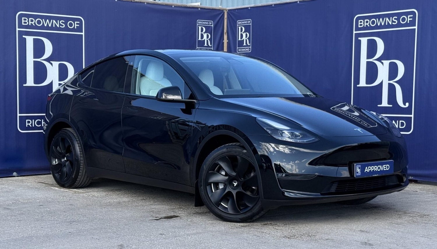 Richmond0 Previous Owners, Browns of Richmond proudly presents the Tesla Model Y Long Range AWD one of the most soughtafter electric cars for sale in the UK and an exceptional choice for anyone ready to embrace the future of driving. This Long Range model features a 75kWh battery and dual motors, delivering outstanding performance with a 060mph time of just over 4.5 seconds. Finished in Black and complemented by factoryfitted 19inch Alloy wheels. Inside, enjoy upgraded premium white vegan leather, heated seats for all passengers and customisable settings saved to individual driver profiles. With a realworld range of 250280 miles and charging costs as low as £5.25 on the right tariff, running costs average around 2p per mile unbeatable for this level of technology and refinement. Built for efficiency and practicality, the Model Y combines everyday usability with cuttingedge innovation. Tesla's intuitive interface and app connectivity make charging and navigation effortless: simply enter your destination and the car calculates routes, charging stops, and arrival battery levels automatically. This vehicle benefits from Tesla's industryleading 4year/50,000 mile vehicle and 8year/120,000mile battery and drivetrain warranty for complete peace of mind. It has also passed our rigorous 114point inspection, ensuring it meets the highest standards before reaching its next owner. At Browns of Richmond, we're more than a dealership we're EV specialists. Our team has been driving and living with electric vehicles for over a decade, giving us realworld experience that few can match. Whether it's charging advice, range tips, or helping you choose the right electric car for your lifestyle, we're here to guide you every step of the way. Contact us today to arrange a Tesla Model Y test drive or learn more we'll make your transition to electric effortless and enjoyable. The advertised price is plus a £199 fee for the Browns Signature Care Package. Full details: https://www.brownsofrichmond.co.uk/brownssignaturecare.