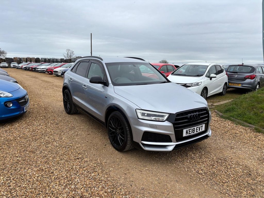 Northampton1 Previous Owner, This 2018 Audi Q3 TDI Black Edition boasts a clear vehicle history, offering you peace of mind. This stylish SUV features a powerful yet efficient 2.0 litre Euro 6 diesel engine, paired with the desirable Black Edition trim. Inside, youll find the convenience of Audi Parking System Plus, with front and rear sensors to assist with manoeuvring. Enjoy a comfortable cabin environment thanks to the DualZone Electronic Climate Control, and experience enhanced visibility with Light and Rain Sensors that automatically activate the headlights. For an immersive audio experience, the Q3 is equipped with a premium BOSE Surround Sound System, and its striking presence is further enhanced by LED headlights with dynamic rear indicators. The Audi Q3 TDI Black Edition is designed to impress, with a remarkable fuel economy of up to 60 miles per gallon, indicating its efficiency compared to similar vehicles. Its low CO2 emissions also contribute to its appeal. This combination of excellent fuel efficiency and reduced environmental impact makes it a sensible choice for the modern driver..19in Alloy Wheels 10YSpoke Design Diamond Cut Finish, 4Way Electric Lumbar Support for Front Seats, 6.5in Colour Display Screen, AMI Audi Music Interface, Anti Theft Locking Wheel Bolts, AntiTheft Alarm, Audi Drive Select, Audi Parking System Plus, AutoDimming RearView Mirror, BOSE Surround Sound System, Black Roof Rails, Black Styling Pack with Black Roof Rails, Bluetooth Interface, ChromePlated Trims for Exhaust Tailpipes, Cloth Headlining in Black, Concert Radio, Cruise Control, DAB Digital Radio, Door Mirrors HeatedElectrically AdjustableFolding, Driver Front Passenger Front Side and Head Airbag System, Drivers Information System DIS 3.5in Monochrome Display, DualZone Electronic Climate Control, ESC Electronic Stabilisation Control inc ABS ASR and EDL, Electric Windows Front, Electromechanical Parking Brake, Electromechanical Power Steering SpeedSensitive Provides a Precise Steering Feel at High Speeds and Excellent Assistance when Parking., Extendable Luggage Compartment Cover, First Aid Kit and Warning Triangle, FlatBottomed 3Spoke Perforated LeatherTrimmed Multifunction Steering WheelContrast Stitching, Front Centre Armrest, Front Lip and Rear Diffuser in Full Paint Finish Diffuser Insert Painted Platinum Grey, Front and Rear Floor Mats, Front and Rear Fog Lights, Full Bodycolour Paint Finish with Front and Rear Bumpers Wheel Arch Trims and Lower Door Trims in Gloss Black, Gear Knob Aluminium, Gloss Black Door Mirrors, Gloss Black Rear Spoiler, ISOFIX Child Seat Mounting and Top Tether, Inlays Piano Finish Black, LED Headlights with LED Rear Lights and Dynamic Rear Indicators, LED Interior Light Pack, Light and Rain Sensors, Manual Seat Adjustment, Pedals in Stainless Steel, Power Operated Tailgate, Privacy Glass, Remote Central Locking, Reversible Luggage Compartment Floor, S Line Badges on Front Wings, S Line Sports Suspension, Satellite Navigation System SD Card Based, Seat Belt Monitoring, Secondary Collision Brake Assist, Space Saver Spare Wheel, SplitFolding Rear Seats, Stainless Steel Loading Sill Protector, Steering Wheel Height and Reach Adjustable, Tool Kit and Jack, Towbar Preparation, Tyre Pressure Loss Indicator, Voice Control System, Windscreen with Acoustic Glazing