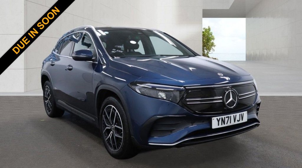 NewquayInsurance Group 38, 1 Previous Owner, Stunning Mercedes EQA with high spec Premium pack inc pan roof, Direct from Mercedes UK with full main dealer history , Superb condition, unto 260 mile range Part Exchange welcome, Competitive Finance packages available, Please contact us by telephone on 01872 510785, or on our websites live chat platform 24hrs a day.....Our office is open 6 Days a week....Monday to Friday 95, Saturday 94, and also on Sundays by prior arranged appointments only...... All our vehicles are prepared and have a new MOT plus they come with a 90 day dealer warranty, and you can upgrade to 1 or 2 years if required. We offer a no hassle friendly service, why not check out our 5 Star google reviews to see what our customers say....plus we are also a member of the Local Trading standards "BUY WITH CONFIDENCE SCHEME",.Stunning car in superb condition , High spec inc Pan roof, reverse camera, , Up to 260 Mile range , Full Mercedes dealer History , Dealer Warranty New MOT, Denim Blue, Artico LeatherDinamica Microfibre Black with Red Contrast Stitching, Heated Front Seats, Electric Panoramic Glass Sunroof, 100kW DC OnBoard Charger, Parking Package with Reversing Camera, 19in Alloy Wheels AMG Light 5Twin Spoke, 10in Digital Instrument Cluster, 10in Digital Media Display, Wireless Charging for Mobile Devices, THERMOTRONIC Automatic Climate Control, 11kW OnBoard Charger, Smartphone Integration, Cruise Control, Seat Comfort Package, ABS AntiLock Braking System, AMG Line Bodystyling, Active Brake Assist, Active Lane Keeping Assist, Active Speed Limit Assist, Airbag Driver, Airbags Kneebag, Airbags Passenger, Ambient Lighting 64 Colours, Black Panel Radiator Grille in a TwinBlade Design in Chrome, CCS2 Connector Combined Charging System Compatible with AC and DC, Charging Cable for Domestic Plug Socket Type G Mode 2 5m, Charging Cable for Wallbox and Public Charging Stations Type 2 Mode 3 5m, Comfort Suspension, DAB Digital Radio, Door Sill Panels Illuminated with EQA Lettering, Double Cupholder, Dynamic Select, EASYPACK Electric Tailgate, EQ Navigation Services, Electric Windows Front, Floor Mats AMG, Front and Rear LED Light Bands, Geofencing, HardDisc Navigation, Headlights Adaptive High Beam Assist, Heat Insulating Dark Tinted Glass, IONITY 1 Year, Interior Lighting Package, Keyless Go Comfort Package, LED High Performance Headlights, Live Traffic Information Free for the First Three Years, MBUX Multimedia System, Mercedes Me Charge 3 Years, MercedesBenz Advanced Sound System 225W, MercedesBenz Emergency Call System, Mirror Package, Notification when Exceeding the Road Speed, Parked Vehicle Locator, Parking Damage and Theft Notification, Pedals Aluminium with Rubber Studs, Power Steering Electric, Programming of Auxiliary Heating Ventilation, Rear Armrest with ThroughLoading Feature, Remote Door Locking and Unlocking, Remote Retrieval of Vehicle Status, Remote Vehicle Finder, Roof Lining Black Fabric, Roof Rails Polished Aluminium, Seats Sports, Send2Car Function, Steering Wheel Galvanised Shift Paddles, Steering Wheel Sports Multifunction in Nappa Leather, Stowage Compartment with Retractable Cover, Stowage Package, Summer Tyres, Surround Lighting with Projection of Brand Logo, TIREFIT, Trim Ligh
