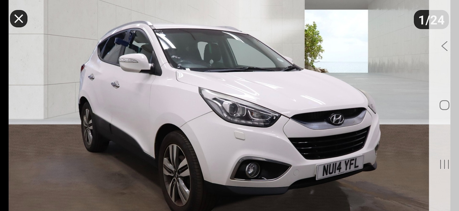 Newcastle-upon-TyneInsurance Group 17, Full Franchise Service History, 2014 hyundai IX 35 1.7 CRDI blue drive premium in white covered 118k miles with full dealer service history, mot till november , 2 key remote, great driver , mechanically sound, good condition inside and out, excellent spec, drl lights, Front fog lights, alloy wheels, remote central locking, multifunctional steering wheel, cruise control, trip computer, handsfree telephone, electric windows x4, electric mirrors, 6 speed manual, dual digital climate control, aircon, touch screen cd/tuner with Satellite Navigation, full black leather interior, heated seats, and much more part ex welcome delivery available, warranties available