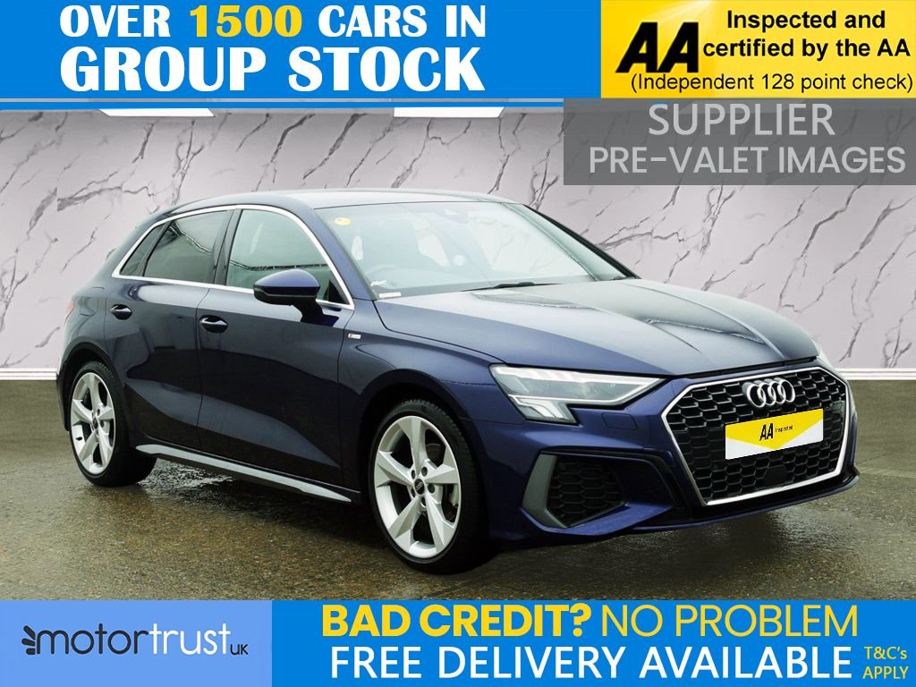 BuryInsurance Group 20, 0 Previous Owners, This 2023 Audi A3 TFSI S line presents an exceptional opportunity with its remarkably low mileage of just 14697 miles, a testament to its single owner history. This Euro 6 compliant model boasts a responsive 1.5 litre petrol engine, paired with the sporty S line trim for a refined driving experience. Its advanced LED headlights with dynamic rear indicators ensure excellent visibility, complemented by automatic headlights activated by light and rain sensors. For added convenience, it features rear parking sensors with parking assistance and a user friendly Bluetooth interface for seamless connectivity on the go. The Audi A3 TFSI S line offers a blend of practicality and performance that sets it apart. Its impressive 060mph acceleration in just 8.7 seconds demonstrates its dynamic capability, while the generous boot space provides ample room for all your needs. The dual zone electronic climate control ensures comfort for all occupants, regardless of the weather outside. These features collectively highlight how this particular A3 offers a superior ownership proposition compared to other vehicles in its class. Welcome to MotorTrustUK, where exceptional standards and customer satisfaction are at the forefront of our service. All of our retail vehicles undergo a rigorous 128point mechanical inspection, independently carried out by a qualified AA technician, to ensure the highest level of reliability and safety. Should any vehicle have less than six months remaining on its MOT or be due a service, these requirements will be addressed prior to delivery. For added reassurance, we include a complimentary nationwide warranty with all qualifying vehicles. With approximately 1,500 vehicles currently in group stock, a number that continues to grow, we are pleased to offer part exchange services, accept all major credit and debit cards, and provide flexible finance options, including HP, PCP, and subprime solutions. Nationwide delivery can also be arranged by quotation. While every effort is made to ensure accuracy in vehicle specifications and descriptions, details may vary; we encourage all customers to speak with a member of our sales team to confirm key information such as MPG figures, available keys, or any factory modifications. To ensure smooth processing and support, an administrative fee is applied to all completed sales. We look forward to assisting you in finding your next vehicle with confidence at MotorTrustUK. .Navarra Blue, 12v Socket and Storage Compartment in Front Centre Console, 18in Alloy Wheels 5Arm Dynamic Design, 2 USBC Ports with Charge and Data Functions, 3Spoke Leather MultiFunction Steering Wheel, 4Way Lumbar Support for Front Seats, 6 Passive Loudspeakers, Airbags Driver and Front Passenger with Passenger Airbag Deactivation, Aluminium Interior Elements, Aluminium Window Trims, Anti Theft Locking Wheel Bolts, AntiTheft Alarm, Audi Connect Navigation and Infotainment Services Plus (3 Year Subscription From New), Audi Drive Select, Audi PreSense Front with Pedestrian and Cyclist Recognition, Audi Smartphone Interface, Audi Virtual Cockpit, Auto Dimming and Frameless Rear View Mirror, Bluetooth Interface, Body Coloured Door Mirrors, Camera Based Traffic Sign Recognition, Cloth Headlining in Black, Collision Avoidance Assistant, Cruise Control, DAB Digital Radio, DualZone Electronic Climate Control, ESC Electronic Stabilisation Control inc ABS ASR and EDL, Electric Windows Front, Electromechanical Power Steering, Electronically Operated Child Locks, Emergency Call ECall, Exterior Mirrors Electrically Adjustable Heated and Folding Automatically Dimming on Both Sides with BuiltIn LED Side Indicators Including Automatic KerbSide Function for the PassengerSide, First Aid Kit and Warning Triangle and 2 Safety Vests, Front Side Airbags with Head Airbags and Interaction Airbag, Front Sports Seats, Front and Rear Centre Armrest in Artificial Leather, Front and Rear Floor Mats, Hill Hold Assist, ISize and Top Tether Child Seat Mounting for the Outer Rear Seats, Illuminated Door Sill Trims with Aluminium Inserts and S Logo, Inlays Dark Spectrum Aluminium, LED Headlights with LED Rear Lights and Dynamic Rear Indicators, LED Interior Light Package, Lane Departure Warning, Light and Rain Sensors, Luggage Compartment Floor Covering, MMI Navigation Plus with High Resolution 10.1in Touchscreen Colour Display, Manual Boot Compartment Lid, Pedals in Stainless Steel and Footrest in Black, Privacy Glass, Rear Parking Sensors, Remote Central Locking, S Line Bumpers, S Line Styling, S Roof Spoiler, Seat Belt Monitoring, SplitFolding Rear Seat Can be SplitFolded 4060 or Folded Fully, Sport Suspension, Tool Kit, Tyre Pressure Loss Indicator, Tyre Repair Kit, Voice Control System with Natural Language Interaction, Windscreen with Acoustic Glazing
