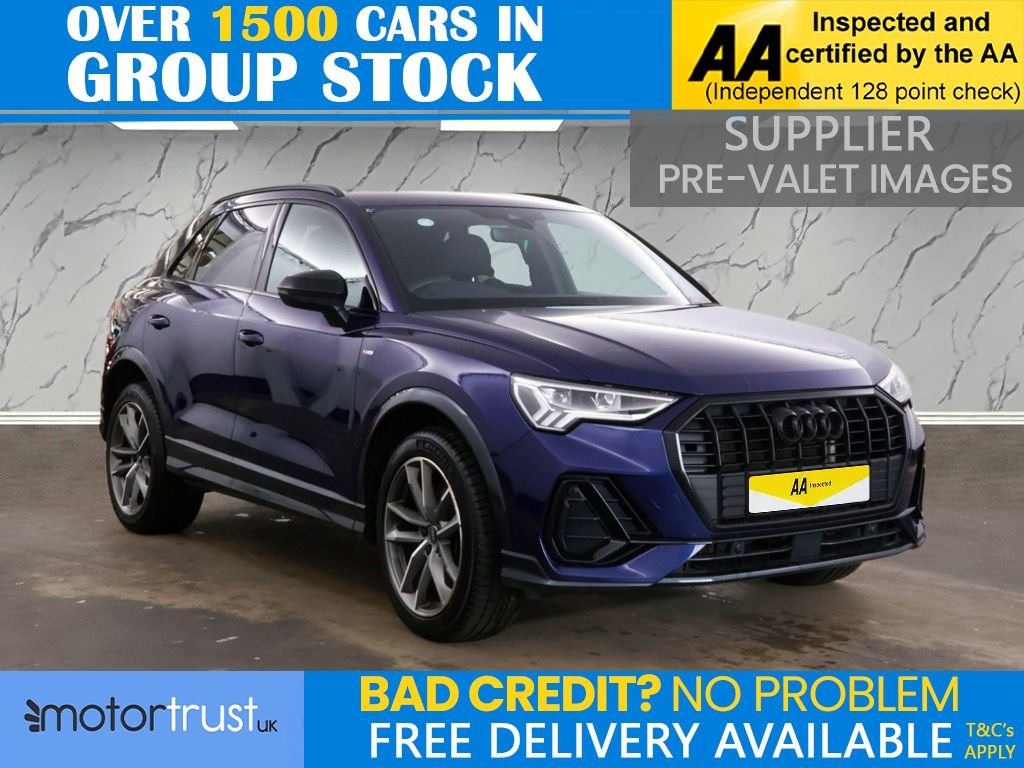Bury0 Previous Owners, This 2023 Audi Q3 TFSIe Black Edition is a superb example, having had only one owner since new. This Euro 6 compliant model boasts a 1.4 litre petrol plug in hybrid engine, offering an efficient and versatile driving experience. It comes equipped with the Audi Smartphone Interface, providing seamless integration for your devices with Wireless Apple CarPlay and Android Auto. Comfort is assured with Dual Zone Electronic Climate Control, and the Bluetooth Interface allows for easy connectivity. Navigating tight spaces is made simpler with Rear Parking Sensors, and the Light and Rain Sensors automatically manage your headlights. The Black Edition trim enhances the Q3s already sophisticated appeal. The inclusion of features like the Audi Smartphone Interface and Dual Zone Electronic Climate Control demonstrate a higher level of specification compared to many other vehicles in its class. This particular Q3 offers a refined and technologically advanced ownership experience, combining Audis renowned quality with practical hybrid efficiency. Welcome to MotorTrustUK, where exceptional standards and customer satisfaction are at the forefront of our service. All of our retail vehicles undergo a rigorous 128point mechanical inspection, independently carried out by a qualified AA technician, to ensure the highest level of reliability and safety. Should any vehicle have less than six months remaining on its MOT or be due a service, these requirements will be addressed prior to delivery. For added reassurance, we include a complimentary nationwide warranty with all qualifying vehicles. With approximately 1,500 vehicles currently in group stock, a number that continues to grow, we are pleased to offer part exchange services, accept all major credit and debit cards, and provide flexible finance options, including HP, PCP, and subprime solutions. Nationwide delivery can also be arranged by quotation. While every effort is made to ensure accuracy in vehicle specifications and descriptions, details may vary; we encourage all customers to speak with a member of our sales team to confirm key information such as MPG figures, available keys, or any factory modifications. To ensure smooth processing and support, an administrative fee is applied to all completed sales. We look forward to assisting you in finding your next vehicle with confidence at MotorTrustUK. .Navarra Blue, 2 USBC Ports with Charge and Data Functions, 20in Alloy Wheels 8.5J 5VSpoke Star Design in Matt Grey Gloss Turned Finish Audi Sport, 6 Passive Loud Speakers, 6Airbag System, Adjustable Rear Seat BenchBackrest with Centre Armrest and Cupholder, Aluminium Look Interior Elements, Aluminium Roof Rails, Ambient Lighting Pack, Anti Theft Locking Wheel Bolts, AntiTheft Alarm, Audi Beam, Audi Connect Infotainment Services Plus including Amazon Alexa Integration (3 Year Subscription From New), Audi Drive Select, Audi PreSense Basic, Audi PreSense Front with Pedestrian and Cyclist Recognition, Audi Smartphone Interface includes Wireless Apple CarPlay, Audi Virtual Cockpit 10.25in Display, Auto Dimming and Frameless Rear View Mirror, B and CPillar Trim in HighGloss Black, Black Styling Package, Bluetooth Interface, CameraBased Traffic Sign Recognition, Cloth Headlining in Black, Cruise Control System with Speed Limiter, DAB Digital Radio, Detail in Dashboard Around the MMI Touch Colour Display in Glass Look Black with Surround in Aluminium Look, Distraction and Fatigue Warning, Domestic Charging Cable 3 Pin 10 Amp, Door Mirrors Electrically Folding Adjustable and Heated with Integrated LED Side Indicators and Kerbview Function for Passenger Side, DualZone Electronic Climate Control, ESC Electronic Stabilisation Control inc ABS ASR and EDL, Electric Windows Front, Electromechanical Parking Brake, Electronically Operated Child Locks, Emergency Call ECall, First Aid Kit and Warning Triangle, FlatBottomed 3Spoke LeatherTrimmed MultiFunction Sport Steering Wheel with GearShift Paddles, Frame of Front Side Air Inlets in Platinum Grey Matt, Front Centre Armrest, Front Spoiler Lip in Body Colour, Front and Rear Floor Mats in Black with Contrast Stitching in Rock Grey, Hill Descent Control, Hill Hold Assist, ISOFIX Child Seat Mounting for the Front Passenger Seat with Front Passenger Airbag Deactivation and ISOFIX Child Seat Mounting and Top Tether for the Outer Rear Seats, Illuminated Door Sill Trims with S Logo, Inlays Piano Black, LED Headlights with LED Daytime Running Lights and Dynamic Rear Indicator, LED Interior Lighting Pack, Lane Departure Warning, Leatherette Door Armrests, Light and Rain Sensors, Luggage Compartment Sill Protection in Stainless Steel, MMI Navigation Plus with High Resolution 10.1in Touchscreen Colour Display, Manually Adjustable Front Seats, NonSmoking Package, Pedals in Stainless Ste