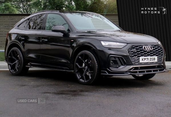 Rathfriland0 Previous Owners, 2021 Audi Q5 2.0 40 TDI SLine Sportback Quattro STronic 204BHP1 Owner from New, Mythos Black on Black Edition Styling and Sitting on a Full Maxton Design Kit!No additional Duty to ROI, VRT is €14700 MOT until October 2026 Cruise Control Heated Seats Reversing Camera Auto Headlights Wireless Apple CarPlay Parking Sensors Self Opening / Closing Boot Sat NavAlloy Wheels are Optional Extra £995No additional Duty to ROI, VRT is €14700Finance options available with £0 depositPart exchange welcomeCheck us out on Facebook, Instagram and Google reviews