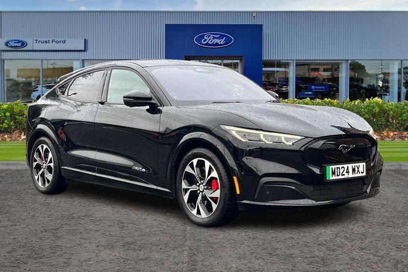 Insurance Group 42, 10.2 digital insturment cluster, 360 degree view camera, Active park assist, Applink remote control system, BLIS (Blind Spot Information System) with cross traffic alert, Distance alert and indication system, Electric power steering, Emergency services call system, Ford SYNC4A with 15.5Touch, DAB radio, Emer assist, Wireless carplay androidauto, 2 front, rear USB ports, FordPass connect, Connected naviation, Front and rear parking sensors, Hands free tailgate, Intelligent adaptive cruise control with stop and go + lane centering, Lane departure warning with lane keeping aid, Selectable drive modes active, whisper and untamed, Trip computer, Wireless charging pad, Adaptive LED Mustang signature headllamps, Black painted power fold heated mirrors with puddle light mustang logo projection, Blade front grille design, Body colour bumpers, Daytime running lights, Fixed full panoramic roof, LED 3rd brake light, LED Mustang signature tail lights, Quickclear heated windscreen, Rear privacy glass, Rear side wing doors, Rear wiper, Side cladding and wheel arches in piano black, 3 seat bench in 2nd row, 8 way power driver seats with lumbar support, 8 way power passenger seats with lumbar support, Ambient lighting, Dual electronic automatic temperature control, Front headrests, Front trunk, Heated front seats and steering wheel, One pedal drive, Perforated full sensico artificial leather upholstery, Rear head restraints, Single front passenger seat, 3 point rear seatbelts, ABS, Child
