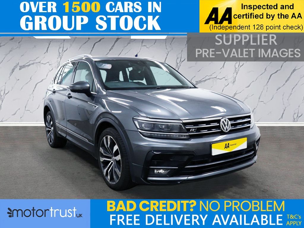 Bury2 Previous Owners, This 2018 Volkswagen Tiguan BiTDI R Line offers an impressive towing weight of 2500 kg, making it a capable companion for your adventures. This Euro 6 compliant model features a powerful 2.0 litre diesel engine paired with Four Wheel Drive for assured handling in various conditions. The R Line trim level enhances its appeal, and youll appreciate the convenience of the Driver Profile Selection, offering Eco, Comfort, Normal, and Sport driving modes to suit your journey. It also comes equipped with Dynamic Chassis Control (DCC) for an adaptable ride and striking trapezoid exhaust tailpipes. Experience exhilarating performance with a 060mph acceleration time of just 6.2 seconds, demonstrating its dynamic capabilities. The Tiguan also boasts a generous boot space, perfect for luggage or shopping. For enhanced visibility and safety, it includes LED headlights with Dynamic Light Assist. The inclusion of a Tyre Mobility Kit provides peace of mind on longer trips. These features collectively position this Tiguan BiTDI R Line as a superior choice within its class, offering a blend of performance, practicality, and advanced technology. Welcome to MotorTrustUK, where exceptional standards and customer satisfaction are at the forefront of our service. All of our retail vehicles undergo a rigorous 128point mechanical inspection, independently carried out by a qualified AA technician, to ensure the highest level of reliability and safety. Should any vehicle have less than six months remaining on its MOT or be due a service, these requirements will be addressed prior to delivery. For added reassurance, we include a complimentary nationwide warranty with all qualifying vehicles. With approximately 1,500 vehicles currently in group stock, a number that continues to grow, we are pleased to offer part exchange services, accept all major credit and debit cards, and provide flexible finance options, including HP, PCP, and subprime solutions. Nationwide delivery can also be arranged by quotation. While every effort is made to ensure accuracy in vehicle specifications and descriptions, details may vary; we encourage all customers to speak with a member of our sales team to confirm key information such as MPG figures, available keys, or any factory modifications. To ensure smooth processing and support, an administrative fee is applied to all completed sales. We look forward to assisting you in finding your next vehicle with confidence at MotorTrustUK. .Indium Grey, 12V Socket Luggage Compartment, 12V Socket in Centre Console in Storage Area, 12V Socket on Rear of Front Centre Armrest, 18 Degree Angle of Approach, 20in Alloy Wheels Suzuka, ABS AntiLock Braking System, Active Bonnet, Active Info Display, Adaptive Cruise Control, Airbags, Alarm with Interior Protection with Deactivation via Infotainment System, AluminiumLook Decorative Inserts in Dash and Door Panels, Ambient Lighting, Automatic ComingLeaving Home Lighting Function, Automatic Dimming Rear View Mirror, Automatic Hazard Light Activation Under Heavy Braking, Black Rooflining, Body Coloured Bumpers and Door Handles, Body Coloured Rear Spoiler, BodyColoured Door Mirrors with Integrated Indicators, CarNet App Connect, CarNet Guide and Inform (3 Year Subscription From New), Carpet Mats Front and Rear, Chrome Side Window Surrounds, Chrome Trim on Radiator Grille Upper and Lower, Chrome Trimmed Front Air Intake Strip, Climate Control 3Zone Electronic Air Conditioning with Automatic Air Recirculation, Coasting Function, Composition Media System, Cup Holders Front x2, DCC Dynamic Chassis Control, Discover Navigation TouchScreen NavigationRadio System with CarNet Guide and Inform, Driver Alert System, Driver Profile Selection Choice of Four Settings Eco Comfort Normal and Sport Driving Mode, Drivers and Passengers Safety Optimised Head Restraints, Dusk Sensor Automatic Driving Lights, Dynamic Light Assist, ESC Electronic Stability Control, Electric Windows Front and Rear, Electrically Foldable Door Mirrors, Electronic Engine Immobiliser, Electronic Parking Brake with Auto Hold Function, Exhaust Tailpipes Trapezoid Left and Right, Folding Table on Back of Front Seats, Front Assist with Pedestrian Monitoring Detection and City Emergency Braking, Front Centre Armrest with Storage Compartment Longitudinal and Height Adjustable and Two Rear Air Vents, Front Fog Lights with Static Cornering Function, Front Footwell Illumination, Front Passengers Seat Folding Backrest, Front Seat Back Storage Pockets, Front Seats with RLine Logo on Rear Seat Backrest, Glovebox Cooled, Heated Front Seats, Heated Rear Window, Heated Windscreen Washer Jets, Height and Reach Adjustable Steering Wheel, HeightAdjustable Front ThreePoint Seat Belts with Tensioners, High Level 3rd Brake Light, Instrument Lighting White Adjustable Panel Illumination, Interior Light Delay, Isofix Child Seat Preparation EasyFit For 2 Outer Rear Se