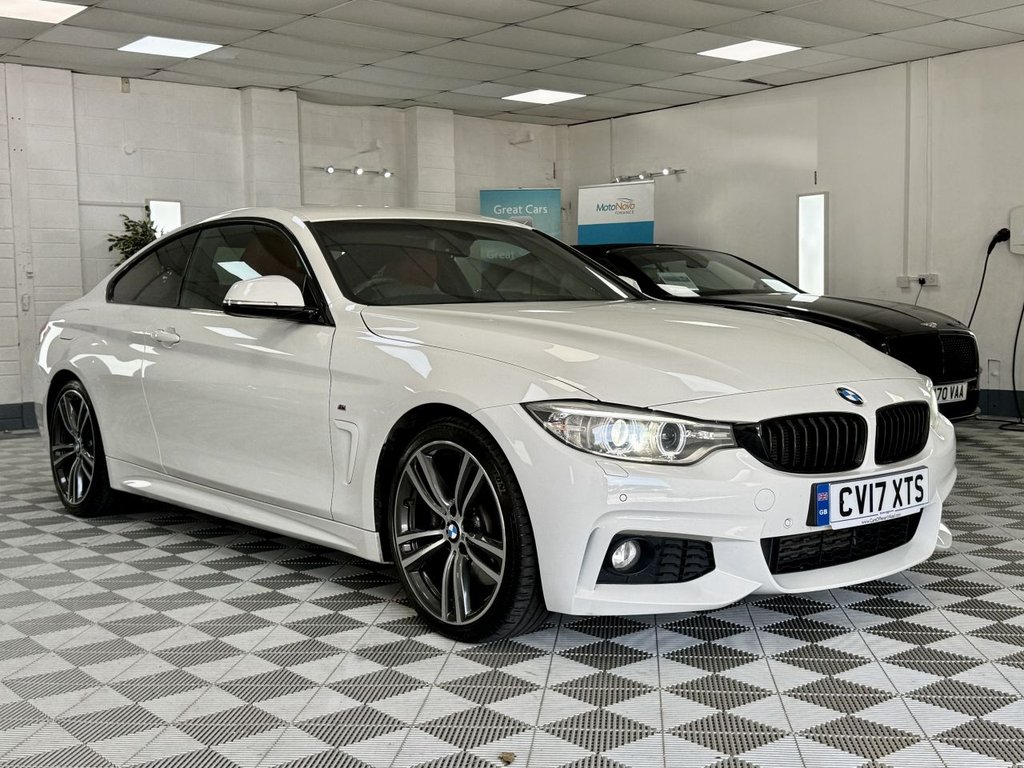 CardiffLovely BMW 420 Diesel M Sport Coupe, Finished In Metallic Apline White With Contrasting Coral Red Interior. Vehicle Comes With Service History Including A New Service, A New 12 Months MOT And 6 Months Nation Wide Warranty. Finance Arranged .12V Power Socket in Front Centre Console and Passenger Footwell, 18in Alloy Wheels M Double Spoke 400M, 3.5mm Auxiliary Input Point in Centre Console for Auxiliary Playing Devices, 6.5in Colour Display Screen, Air Breather Black High Gloss, Air Conditioning Automatic Dual Zone, Air Conditioning and Radio Control Panel in High Gloss Black, Airbags, Alarm System Thatcham 1 with Remote Control and Engine Immobiliser, Ambient Lighting Switchable BMW Classic Orange Cold White LED, Armrest Front Folding with Storage Compartment, Armrest Rear Centre with Two Cupholders, Automatically Dimming Rear View Mirror, BMW ConnectedDrive Online Services, BMW Emergency Call, BMW Professional Radio with Single CD Player with MP3 Playback Compatibility, BMW TeleServices, Battery Safety Cut Off, Bluetooth HandsFree Facility with USB Audio Interface and Audio Streaming, Bottle Holders Integrated into Door Trim Storage Compartments Front Up to 1 litre, Brake Pad Wear Indicator Front and Rear, Bumper System Front and Rear, Central Locking Switch Doors Fuel Filler Cap Luggage Compartment, Check Control Warning System for Monitoring of Lights and DoorLuggage Compartment Open Warning, Child Seat ISOFIX Attachment Rear with Passenger Airbag Deactivation, Concierge Service, Condition Based Service, Crash Sensor, Cruise Control with Brake Function, Cup Holders Two in Front with Sliding Lid, DAB Digital Radio, DSC Dynamic Stability Control Plus, Direction Indicator Side Repeaters Integrated in Exterior Mirrors, Direction Indicator Lights Clear Lenses, Door Mirrors Electric and Heated, Door Sill Finishers M Designation, Drive Performance Control ECO PRO Comfort Sport Sport Plus, Dynamic Brake Lights, Electric Windows Front with OpenClose Fingertip Control AntiTrap Facility and Comfort Closing Function, Exhaust Tailpipes Dual Left with Chrome Finisher, Extended Lighting, Exterior Parts in Body Colour, Exterior Trim HighGloss Shadowline, First Aid Kit and Warning Triangle, Floor Mats Velour, Fog Lights Front and Rear, Full Black Panel Display, Glove Compartment, Glove Compartment Opener with Chrome Trim, Handbrake Lever Gear Knob in Leather, Headlight Wash, Headlining Anthracite, Heat Protection Glazing with Green Tint, High Level Third Brake Light, Incorrect Fuelling Protection System, Integrated Rear Seat Headrests Two, Interior Lighting Front Centre Over Interior Mirror with SoftLight and Rear