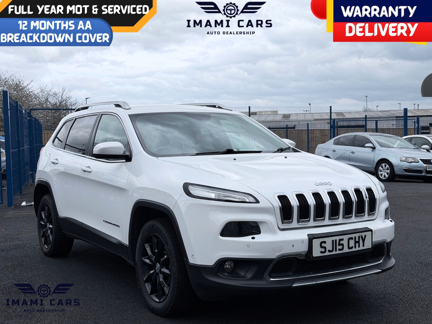 Darlington2015 Jeep Cherokee 2.0 MJet Limited Auto AWD Diesel finished in white with 129000 miles. Comes with full service history, freshly serviced and supplied with a full year MOT. Automatic gearbox with smooth drive and good fuel economy.High specification Limited model including leather seats, heated front seats, satellite navigation, Bluetooth, cruise control, climate control, parking sensors, alloy wheels and multifunction steering wheel.Vehicle includes 1 year warranty and 12 months AA cover for added peace of mind. Drives well and ready to go. Part exchange welcome. Contact Imami Cars Darlington to arrange viewing or test drive.