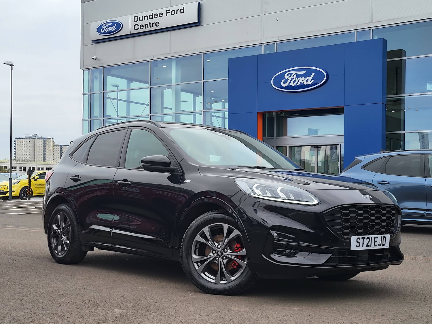 DundeeInsurance Group 18, 0 Previous Owners, 3x3 point rear seatbelts, Airbags front driver/passenger, front and rear curtain, Drivers knee airbag, Electronic stability control (ESC) and ABS, Ford MyKey Gen 2 safety system, Manual child proof rear door locks, Post collision braking, Pre collision assist with autonomous emergency braking, Rear seat Occupancy alert, Red brake calipers, Tyre pressure monitoring system, 12.3 inch digital colour instrument cluster, Cruise control with adjustable speed limiter, Ford easy fuel, Ford SYNC 3 with 8 inch TFT LCD touchscreen, App Link, andriod auto/apple carPlay, emergency assistance and navigation with Ford pass connect, Front and rear parking sensors, Hands free power tailgate, Lane keeping aid with lane departure warning, Power assist steering, Rear view camera, Selectable drive modes, Service interval indicator, Auto headlamps with high and low beam, Black roof rails, Day/night rear view mirror, Front LED fog lamps, Full LED headlamps, Large rear spoiler, LED daytime running lights, LED rear lights, Power folding heated door mirrors with puddle lights, Power front/rear windows with global close, Privacy glass, Quickclear heated windscreen, Solid paint, ST Line body styling kit with unique front and rear fascia and bumper, rear painted diffuser, front painted skid plates, dark mesh upper grille, ST Line front scuff plates, Third brake light, Twin exhausts, 10 way power adjustable drivers seat, 8 way manual passenger seat including lumbar support and height adjust, Alloy pedals, Centre console with electronic parking brake, Dark headlining and pillars, Dual electronic automatic temperature control, Flat bottomed leather steering wheel in sensico with red stitching, Front and rear head restraints, Partial premium touch sensico leather upholstery with black cloth inserts and red stitching, Rear charging point, Sports seats, ST Line front and rear floor mats, ST Line gear knob, Sports suspension, Twist beam rear suspension, Engine immobiliser, Keyless entry and Ford power start button (Keyless start), Locking wheel nuts, Remote powered central double locking doors, Thatcham category 1 alarm, BandO premium audio system with 10 speakers and subwoofer, 2 USB ports, DAB radio/CD, 18 inch 10 spoke rock metallic alloy wheels, Tyre inflation kit