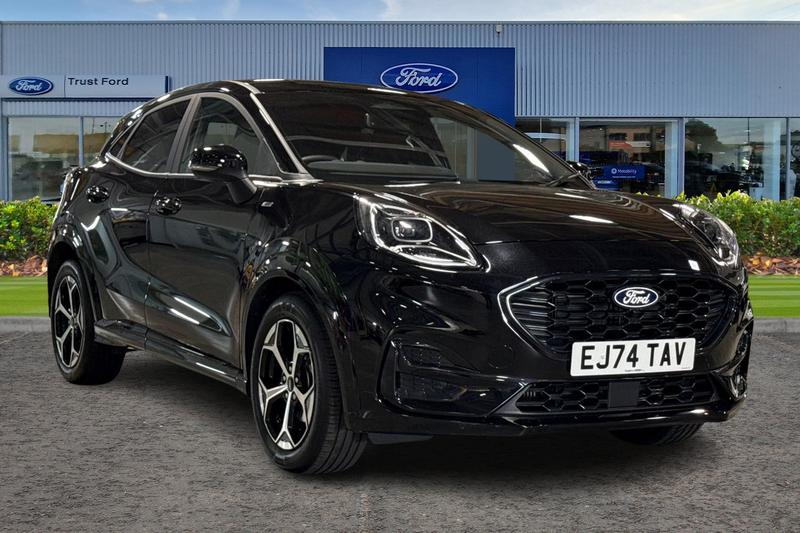 Insurance Group 12, Driver alert system, Emergency call service, Ford easy fuel, Full digital 12.8 instrument cluster, Lane keeping aid, Power assist steering, Selectable drive modes(Normal, Eco, Sport, Slippery and Trail), Speed sign recognition, Automatic headlights with rain sensing wipers and auto high beam, Front fog lamps, LED daytime running lights, LED rear lamps, LED third brake light, Power foldable heated door mirrors with puddle lamps and puma logo protection, Quickclear heated windscreen, Rear privacy glass, Rear side wing doors, Rear wiper, STLine body styling kit with unique grille, 3 seat bench in 2nd row, Centre console with armrest and stowage, Electronic automatic temperature control (EATC), Ford megabox extended bootspace, Front and rear head restraints, Front floor mats, Manual 4 way driver seat adjust with lumbar adjustment, Single front passenger seat, ST Line cloth trim with red stitching, 3 rear seatbelts, Child safety lock, Electronic stability control (ESC) and hill start assist, Precollision assist with autonomous emergency braking, pedestrian/cyclist detection & postcollision braking, Tyre pressure monitoring system (TPMS)
