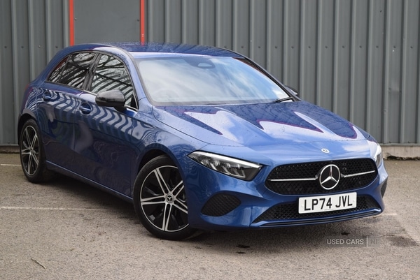 LisburnInsurance Group 19, 0 Previous Owners, The MercedesBenz A CLASS A180 Sport Edition 5dr Auto offers a contemporary driving environment, well suited to a broad range of drivers and journeys. With a low mileage of just 9,595 miles, this vehicle provides a nearlynew motoring experience, complemented by an automatic transmission for effortless progress in varied driving conditions. The blue paint colour, coupled with privacy glass and chrome detailing, gives the car a sophisticated appearance that aligns with the MercedesBenz reputation for considered design.A dynamic petrol engine, delivering 136 bhp, ensures a confident and refined drive. The top speed of 134 mph means this A CLASS is well equipped for motorway journeys and longer trips, while the automatic transmission enhances convenience in both urban and open road settings. While the 060 mph time stands at 9.2 seconds, the Sport Edition's various driving modes allow the choice between efficiency and a more responsive character, depending on personal preference.Striking exterior features include body colour bumpers and door handles with chrome inserts, a diamond radiator grille with a fine star pattern, and LED high performance headlamps. The blue paintwork is complemented by chrome beltline strips and an exhaust system with visible tailpipe trim elements, enhancing the visual appeal. Inside, the cabin is finished with Artico manmade leather and Bertrix fabric upholstery, a black roof lining, and a frameless interior mirror, contributing to a contemporary and comfortable atmosphere.Specification highlights include a 10.25inch touchscreen central media display, smartphone integration with Apple CarPlay and Android Auto, and adaptive LED lighting for improved visibility. Practical features such as heated front seats, automatic climate control, rainsensing wipers, and a height and reachadjustable steering column support convenience and comfort. Safety systems are comprehensive, with active brake assist, lane keeping technology, multiple airbags, ISOFIX child seat points, and a tyre pressure monitoring system, providing reassurance for occupants