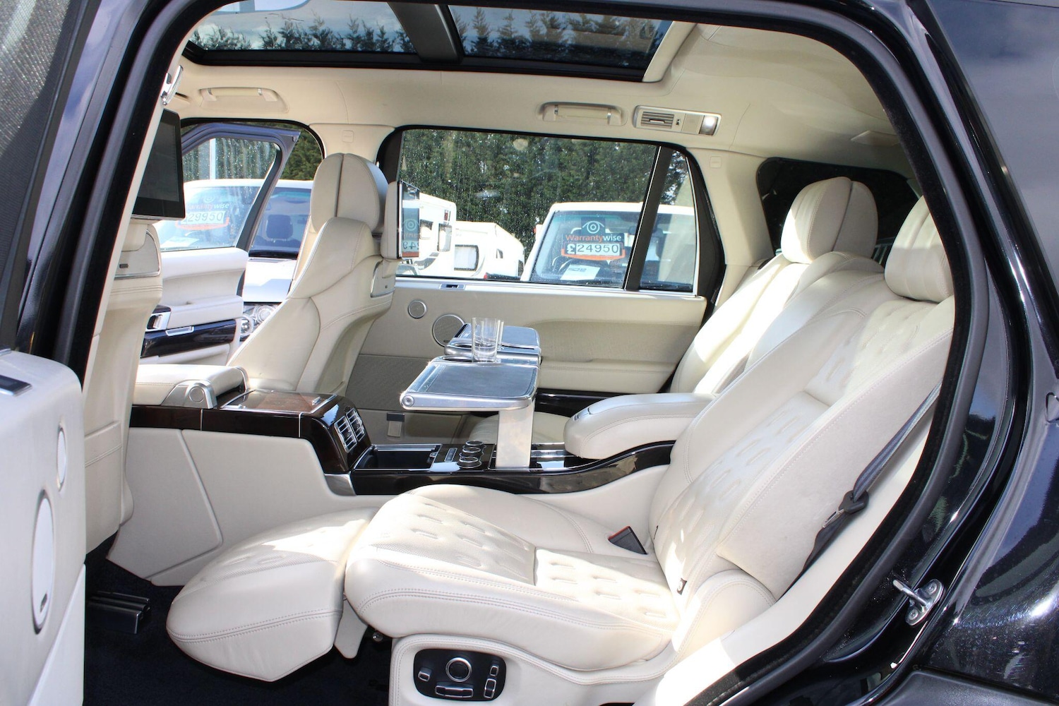 OldhamTHE VOGUE CENTRE THE UK'S LARGEST RANGE ROVER SPECIALIST ARE PLEASED TO OFFER THIS UNBELIEVABLY RARE 4.4 SDV8 TOP OF THE RANGE SV LWB WITH UNBELIEVABLE SPEC THAT'S ONLY AVAILABLE ON THESE SV MODELS, NEW TODAY THIS CAR WOULD BE £225,000, REVISED AND IMPROVED 2017 MODEL WITH UPGARDED SCREENS AND ONLY £195 A YEAR ROAD TAX, FULL LAND ROVER DEALER/SPECILIST SERVICE HISTORY JUST BEEN FULLY SERVICED AND INSPECTED, FINISHED IN SANTORINI BLACK WITH FULL IVORY HIDE AND OAK FINISHERS FREE 6 MONTHS PARTS AND LABOUR WARRANTY INCLUDING BREAKDOWN COVER AND COURTESY CAR FREE 12 MONTHS AA COVER OR 12 MONTHS UPGRADED AA COVER IF YOU ARE ALREADY A AA MEMBER FREE FULL MOT WITH EVEN THE ADVISORIES DONE FULL INSPECTION WITH ANY FAULTS FIXED BACKED UP BY A 30 DAYS MONEY BACK GUARANTEE Private plate included Rear executive seats with full body massage Rear passenger footrest Rear electric tables Champagne cooler Walnut boot floor Electric side steps Electric tow bar Park assist and tow assist 1700 watt meridian sound system Leather everything even the parcel shelf and boot surround are leather Traffic Sign Recognition with Lane Departure Warning 22'' alloy wheels Opening panoramic glass Roof 10.2 inc rear DVD/TV entertainment screens with remote and wireless headphones Heated Leather Steering Wheel 360 surround cameras Blind spot monitor High beam assist Heated/cooled front seats with full body massage Soft close doors plus auto open and close tailgate Winged headrests Fridge Leather headlining Extended nappa leather to doors and dash Adaptive Cruise Control with Queue Assist Timed climate Dual View Touch Screen Freeview digital TV DAB radio Bluetooth FINANCE AVAILABLE AT VERY COMPETITIVE RATES WE ARE A FAMILY RUN RANGE ROVER VOGUE SPECIALIST AND HAVE THE BIGGEST SELECTION IN THE UK WITH UP TO 70 RANGE ROVER VOGUE'S IN STOCK PLEASE SEE OUR WEB SITE WWW.THEVOGUECENTRE.CO.UK FOR FULL STOCK LIST AND UP TO 50 HD PICTURES OR IF YOU NEED ANYTHING RANGE ROVER PLEASE CALL ME JAMES DIRECT ON 07960520020