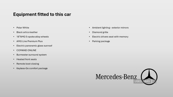 BelfastMercedesBenz of Belfast and Portadown are the only official MercedesBenz dealerships in Northern Ireland. Our Approved Used cars go through a robust qualitycheck process that ensures you can purchase quality and reassurance in your used MercedesBenz car from our vast stock of MercedesBenz vehicles. We pride ourselves on providing quality vehicles prepared by Mercedes Benz trained technicians at affordable prices, with a personal service. Buying an Approved Used MercedesBenz should feel as special as driving the vehicle itself and should never be a compromise. Our Sales team are standing by and ready to help you with your personal buying journey, . Video Of Car Available On Request Call a member of our team on 02895682645