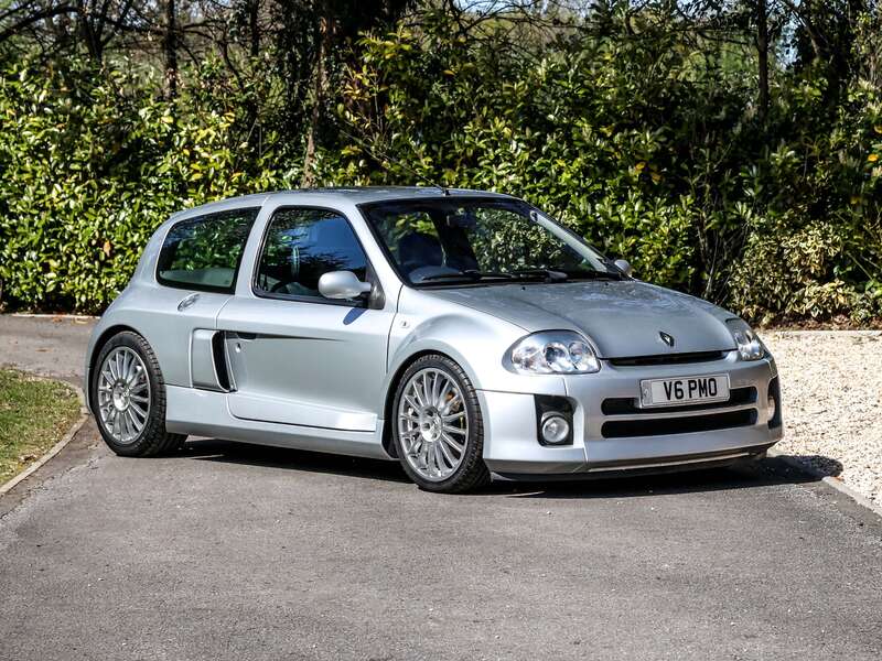 This lot will be auctioned via Iconic Auctioneers, The Classic Sale at Supercar Fest 2026 on Saturday the 16th of May, Sywell Aerodrome, Sywell, Northampton, NN6 0BN. , UKsupplied, righthand drive Phase 1 Renault Clio V6 first registered in November 2002 and understood to be one of just 223 examples finished in Iceberg Silver,A spinoff from the Clio Trophy race series and first previewed at the Paris Motor Show in 1998, the Clio V6 230 was in many ways the spiritual successor to the midengined 5 Turbo,Where the rear seats would normally be nestled a tweaked version of the proven and unstressed 3litre, 24v, V6 unit from the Laguna saloon offering access to 227bhp (230PS) fed to the rear wheels and enabling 060mph in 6.2 seconds and 146mph,The Phase 1 cars were assembled by hand at the Tom Walkinshaw Racing (TWR) workshops in Uddevalla in Sweden, using parts shipped from France, producing just 1,513 examples between 2001 and 2003,This example has formed part of a carefully curated collection of significant hot hatches over the past decade, stored correctly in a modern, temperaturecontrolled facility,Showing signs of considered ownership over the years with a substantial history file documenting maintenance by respected specialist garages,Notable recent mechanical works (in terms of mileage) include a cambelt and water pump replacement at 66,954 miles, followed by clutch and flywheel renewal,Retains a high degree of originality, further supported by inclusion of a set of standard Phase 1 alloy wheels,At the time of cataloguing the Clio fired into life easily, sounded healthy and manoeuvred well on the photoshoot. Offered with the private registration V6 PMO, which forms part of the sale,Increasingly regarded as one of the most distinctive and collectible modern classics of the early 2000s, combining rarity, striking design and a unique midengined layout,