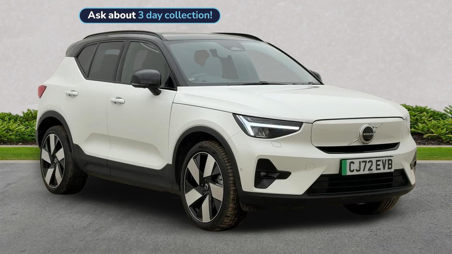 Franchise Approved, Sculpted gear shift Charcoal interior inserts Roof top in contrast colour. Black Stone Door mirror covers. Black Stone Connect Suede textile/Microtech upholstery Shiftbywire single speed transmission. AWD 2Zone Electronic Climate Control Afterrun parking climate Passenger Airbag Cut Off Switch Dual Stage Driver and Passenger Airbags Heat Pump (Enhanced Cabin Heating and Cooling Efficiency with Optimal Vehicle Range) Driver Knee Airbag Panoramic roof Charcoal headlining Road Sign Information Driver Alert Control with Lane Keeping Aid Colour Coordinated Front Covered Grille and Surround Heated grill emblem LED headlights Headlight Cleaning System Rear fog lights switched off when trailer fog lights are running Front LED Foglights 12inch driver display Google Assistant. Google Maps and Google Play Store included for 4 years Pilot Assist (up to 80mph) Adaptive Cruise Control with Distance Alert & Queue Assist Pilot Assist Adjustable Speed Limiter Volvo Cars App remote functions included for 4 years Fresh Air Subwoofer DAB (Digital Audio Broadcasting) Radio Premium Sound by Harman Kardon Autofolding Heated Power Door Mirrors Wireless/Inductive Mobile Phone Charging Automatic door locking Remote key Small storage. front Double locking Tinted rear windows BLIS and Cross Traffic Alert Antitheft Alarm including Immobiliser. Volume Sensor and Level Sensor Power Child Locks Power Operated Tailgate Keyless Drive (includes Keyless Entry and Keyless Start) "CleanZone" Air Quality System and Pollen Filter GloveBox Bag Hook Digital owners manual Topography decor Power Driver's Seat with Memory Power Passenger Seat Heated front seats Heated Rear Seats Outer Positions Power Folding Rear Seat Headrests 5 seats Mechanical release second seat row Manual cushion extensions. driver and passenger 4Way Lumbar Support Sport Textile Mats. Charcoal Load Protection Net Foldable load floor with cargo divider and grocery bag holder Rear centre armrest iSize/ISOFIX mounting points. front seat Illuminated Vanity Mirrors Rear Footwell and Side Step Illumination Automatically dimmed inner and outer rear view mirrors Front and 2nd Row Centre Armrest with Cupholders Front load compartment Glossy black tunnel console Chassis Hill Start Assist Indirect Tyre Pressure
