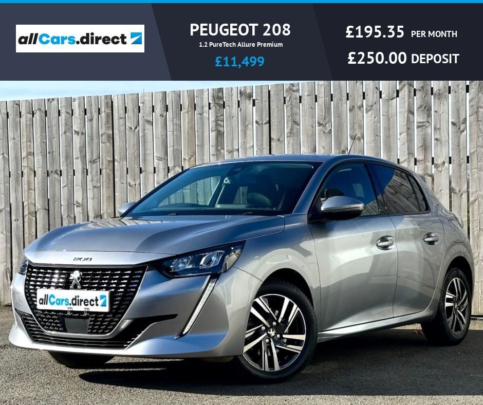 Houghton le SpringInsurance Group 19, 1 Previous Owner, Only 2 owners from new! This 2021 Peugeot 208 Allure Premium is a superb example of a well maintained compact car. Powered by an efficient 1.2 litre petrol engine, this Euro 6 compliant model offers an impressive fuel economy of up to 55 miles per gallon. The Allure Premium trim level ensures a comfortable and well equipped driving experience, making it a practical choice for everyday use. With its low CO2 emissions, this Peugeot 208 stands out as a more environmentally conscious option compared to many other vehicles in its class. This, combined with its excellent fuel efficiency, means you can enjoy your journeys while being mindful of running costs and your carbon footprint. The 208 Allure Premium provides a refined and economical way to navigate both city streets and longer routes. Impressive specification including Apple / Android Car Play, reverse parking camera, auto headlights with LED daytime running lights, auto windscreen wipers, USB inputs for front and rear passengers, rear privacy glass, drivers armrest with storage, Bluetooth, Bluetooth audio music connectivity, digital speedometer, DAB Radio, multi functional steering wheel controls, USBC input, all round electric windows and electric mirrors. Lots of room for passengers and an ample sized boot for shopping/luggage. Very comfortable car for both the driver and all passengers. Serviced at 13,380 miles at Peugeot, at 23,625 miles at Peugeot, at 35,502 miles at Peugeot and at 41,199 miles at Peugeot. This car comes with the All Cars Direct peace of mind package which includes 6 months warranty. The warranty is electrical and mechanical including parts and labour. A minimum of 6 months MOT, an 86 point quality inspection and service. The car will be prepared to the highest standard possible both mechanically and cosmetically. Please take the time to check our feedback & many happy customer reviews. We welcome any inspection and we also collect from the train station and Airport. Competitive finance rates available covering all credit levels..