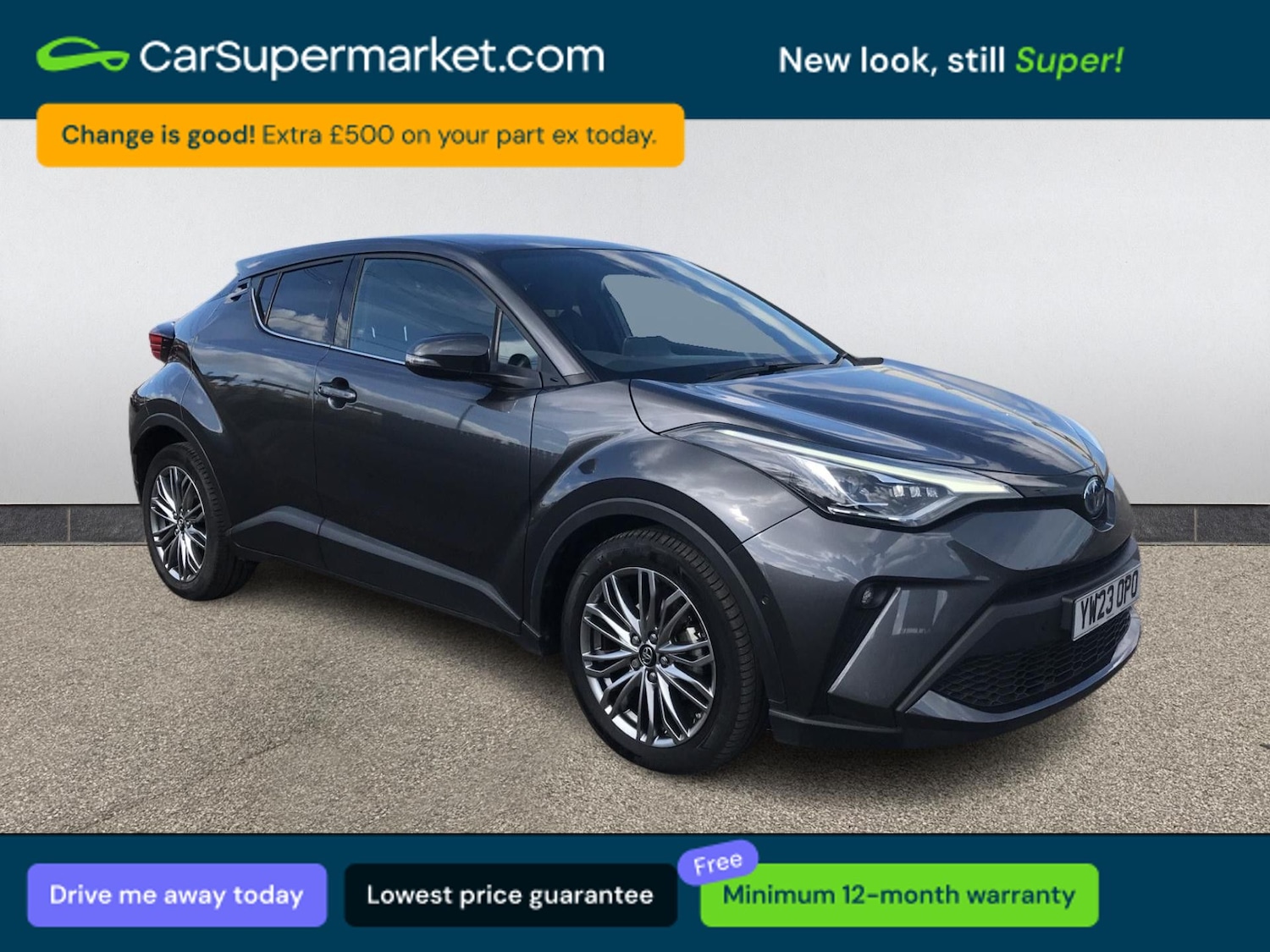 Insurance Group 16, 0 Previous Owners, Toyota CHR Excel HEV CVT (Grey) A stylish hybrid SUV offering excellent efficiency with a refined and comfortable drive. Includes adaptive cruise control, Apple CarPlay, Android Auto, Bluetooth, rear view camera, parking sensors, and heated steering wheel. Minimum 12month warranty. MOT due 10/03/2027.