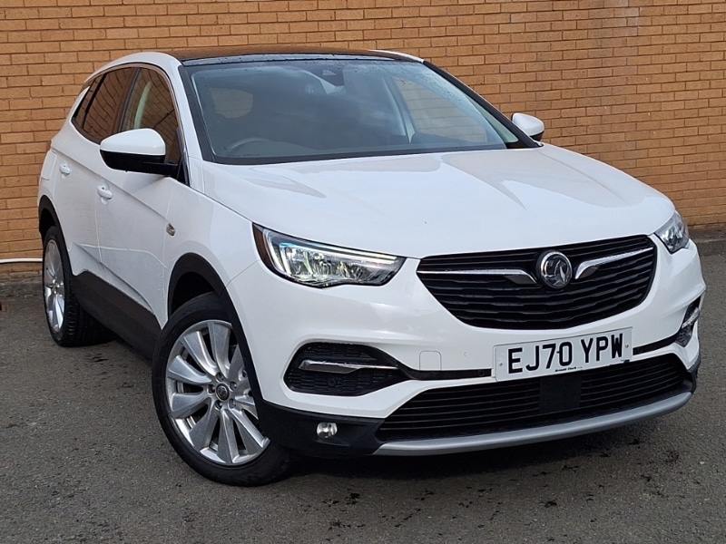 GlasgowInsurance Group 17, Apple CarPlay, Cruise control, LED daytime running lights, LED Headlights, Steering wheel audio controls, Multi function trip computer, Lane departure warning system, Gearshift up/down indication light, Fuel gauge with low fuel level warning light, Front camera system, eCall emergency call system, Digital water temperature gauge with warning light, Cruise control with speed limiter and intelligent speed adaption, Central facia display with digital clock, outside air temperature and audio information, 3.5" colour information display, Speedometer, Voice control system, Vauxhall connect including Ecall and connected services, Speed sign recognition, Speed sensitive electric power assisted steering, Side blind spot alert, Driver's centre armrest, Covered storage compartment in centre console and in driver armrest, Chrome effect interior door handles, Centre rear head restraint, Winter pack one Grandland X, Versatility pack Grandland X, Sight and light pack Grandland X, Safety pack Grandland X, Ergonomic active leather front seats and power drivers seat pack Grandland X, Front and rear seatbelt reminder, Engine drag torque control, Energy absorbing steering column, Electronic parking brake, EBD Electronic brakeforce distribution, Dual seatbelt pretensioners on front seats, Locking wheel nuts, Keyless entry/start + Power tailgate, Engine deadlock and immobiliser, Toba grey facia and door panel inserts, Black door panels with black premium leather effect inserts