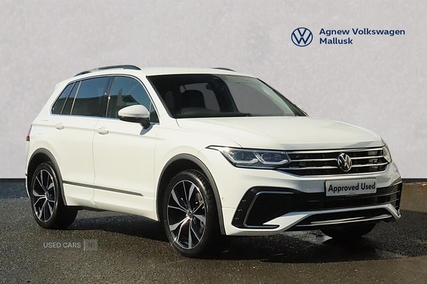 Newtownabbey0 Previous Owners, Agnew Volkswagen Mallusk are delighted to offer this stunning 2022 Volkswagen Tiguan RLine 1.4 TSI eHybrid 245PS 6Speed DSG 5 Door in Pure White with 20" Misano Alloys RLine Bodystyling Kit with RLine Front and Rear Bumpers Side Skirts 10mm Lowered Suspension Heated RLine Sports Seats PlugIn Hybrid Rear Privacy Glass Discover Navigation with AppConnect for apple CarPlay and Android Auto Leatherwrapped, heated, multifunction sports steering wheel Adaptive Cruise Control Adaptive Chassis Control DCC Driver Assistance Pack Plus with Park Assist Dynamic Road Sign Display Side Assist Blind Spot Detection Rear Traffic Alert Lane Keeping Assist Electric Folding Door Mirrors Front and Rear Parking Sensors Interior Ambient Lighting