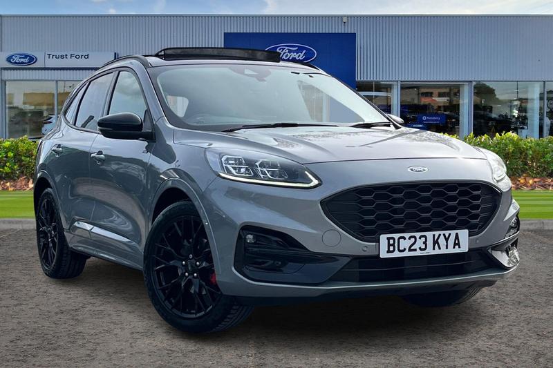 Insurance Group 16, 12.3 digital colour instrument cluster, Ford easy fuel, Ford SYNC 3 with 8 TFT LCD touchscreen, App Link, andriod auto/apple carPlay, emergency assistance and navigation with Ford pass connect, Front and rear parking sensors, Hands free power tailgate, Lane keeping aid with lane departure warning, Power assist steering, Rear view camera, Selectable drive modes, Service interval indicator, Auto headlamps with high and low beam, Black roof rails, Body colour bumpers, Day/night rear view mirror, Front LED fog lamps, Large rear roof spoiler, LED daytime running lights, LED rear lights, Power folding, electrically adjustable and heated door mirrors with puddle lights, Power front/rear windows with global close, Power opening panoramic roof, Quickclear heated windscreen, Rain sensing wipers, Rear privacy glass, Rear side wing doors, Rear wiper, ST Line body styling kit with unique front and rear fascia and bumper, rear painted diffuser, front painted skid plates, dark mesh upper grille, ST Line front scuff plates, Third brake light, Twin exhausts, 2nd row sliding seats with 60:40 split, Alloy pedals, Centre console with electronic parking brake, Dark headlining and pillars, Electronic automatic temperature control (EATC), Flat bottomed leather steering wheel in sensico with red stitching, Front and rear head restraints, Heated passenger and driver seats, Heated rear seats, Heated steering wheel, Partial premium touch Sensico with black cloth inserts and red stitching, Rear