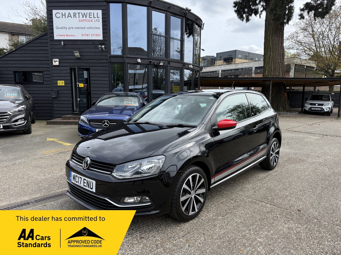 SudburyInsurance Group 15, Full Service History, Chartwell's are pleased to offer this VW Polo 1.2 TSI Tech Beats for sale. ULEZ compliant. Only 3 previous owner from new. A rare opportunity to buy a highly desirable low mileage and great spec Polo. The car comes complete with a full service history and a fully stamped service book as shown in our photos. The last service was on 08/04/2026 at 43,035 miles. The current MOT runs until 07/04/2027 passing with 0 advisories. Great condition throughout, this car looks stunning in the Tech Beats spec with the red door mirrors and red graphic styling along the skirting. Drives superb. All Alloys have been profesionally refurbished. Being a Polo we know they sell fast, Having this rare model with the lovely mileage and all the history its a great buy. The spec includes the following, Metallic Paint, 17" Alloys, Cloth/suede seats, Beats Badging, Parking sensors, Fog lights, Remote locking, Rear heated screen, Air conditioning, Electric windows, Electric heated mirrors, Steering wheel controls, Rear ISOFIX, Beats sound system, Bluetooth audio, DAB Radio CD Player AUX and much more. We have the full book pack and 2 remote locking keys. The car is HPI clear with the printout available. We are an approved AA dealer. All our cars come with free 12 months AA breakdown cover. Driveaway insurance is now offered through the AA. Our cars (not commercial) come with a 3month/ 3000 miles warranty as standard unless explicitly sold as a trade sale. We do offer extended warranties through WarrantyWise for 6 months 2year terms. For more information please call us.