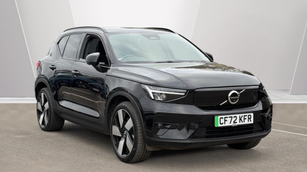 Southampton0 Previous Owners, 12.3" Progressive Driver Display, 360 degree surround view parking camera with side proximity sensors, 9" centre console portrait touch screen, Adjustable steering wheel force, Bluetooth handsfree system, Driver assistance (pilot assist and adaptive cruise control), Driver awareness Blind spot information system with steer assist, cross traffic alert with autobrake and rear collision warning and mitigation, Emergency services call system, Front park assist, Google automatic services Nav with google maps, apple carplay/android auto, voice recognition with google assistant, Hands free power tailgate, Lane keep assist with driver alert control, Oncoming Lane Mitigation, Rear park assist, Speed limiter, Speed sensitive steering, Volvo cars services with app, Volvo on call with charge station locations and route planning and pre climatisation, Wireless Smartphone Integration includes Apple CarPlay and Android auto, Wireless/Inductive Mobile Phone Charging, 11 kW AC onboard charger, 7m 10amp charging cable with 3 pin plug and 4.5m 3 phase 32 amp type 2 / mode 3 charge cable, Charging port located in nearside rear wing, Electric front axle drive, Lithiumion battery, Recharging port located in nearside rear wing, Touring chassis, DAB Digital radio, Low speed exterior sound speaker, Premium Sound by Harman Kardon, Dolby Pro Logic II Surround Sound, Dirac Unison,12 speakers/600W and subwoofer, Steering wheel remote infotainment controls, Adaptive brake lights with high level LED brake lights, Auto dimming exterior rear view mirror, Auto dimming interior mirror, Automatic headlamp levelling, Automatic LED Headlights + Active high beam incorporating daytime running lights, Colour coordinated front grille and surround, Dark tinted windows for rear door side windows and cargo compartment, Electric adjustable/heated/auto folding door mirrors, Front and rear electric windows, Front recharge tread plates, Headlight cleaning system, High gloss black front and rear skid plate, High gloss black lower front bumper, High gloss black window trim, Home safe and approach lighting, Integrated roof rails in high gloss black, LED front fog lamps, Power glass tilt and slide panoramic sunroof with sun curtain, Puddle lights, Rain sensor with automatic windscreen wiper activation, Rear side wing doors, Rear wiper, Recharge embossed rear side roof pillar, Roof antenna, Visible VIN plate, 12V socket in front tunnel console and luggage compartment, 2 zone electronic climate control