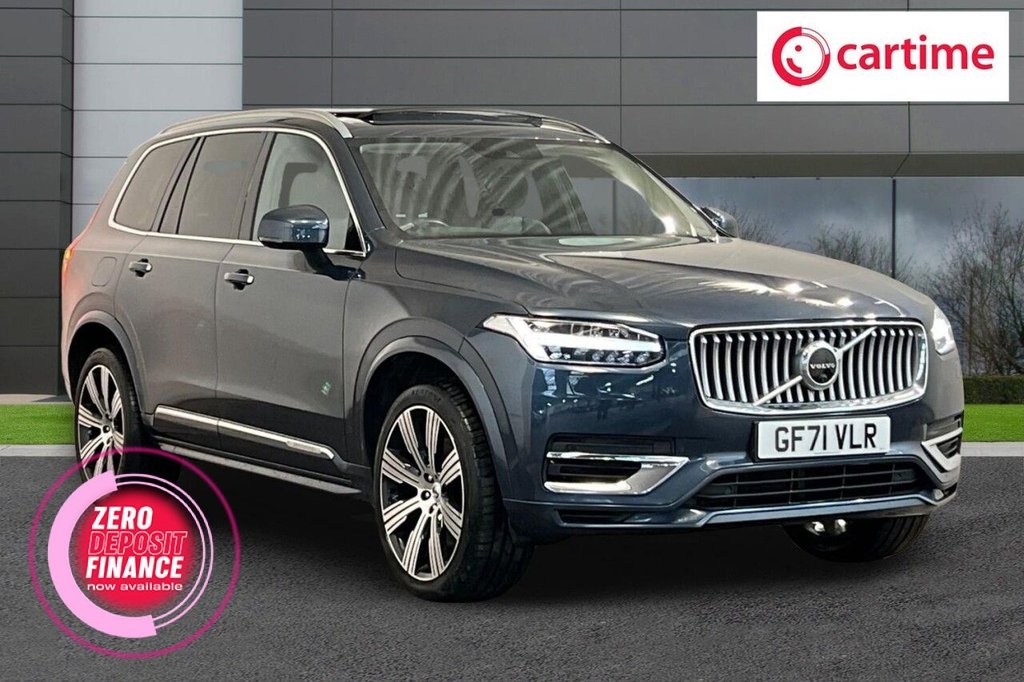 Insurance Group 45, 0 Previous Owners, This 2021 Volvo XC90 h T8 Inscription Pro is a superb example, boasting a full dealership service history from its single owner. This premium seven seat SUV features a powerful 2.0 litre petrol plug in hybrid engine paired with Four Wheel Drive, ensuring efficient and capable performance. The Inscription Pro trim level offers a luxurious experience, enhanced by the inclusion of the Lounge Pack with its electric and opening panoramic sunroof, and a 360 degree surround view parking camera system for effortless manoeuvring. Experience the impressive acceleration of this XC90, reaching 0 to 60 miles per hour in just 5.5 seconds, a testament to its advanced hybrid technology. This performance, combined with its Euro 6 emission class and a substantial towing weight of 2400 kg, positions it as a superior choice for those seeking both power and practicality. Further enhancing your journey are features like Driver Awareness with Blind Spot Assistance, 4 zone electronic climate control with a cooled glovebox, and a rear park assist camera, all designed to provide comfort, safety, and convenience. Lifetime warranty available on this car, plus a £1,000 finance contribution when you part exchange. Voted UK Car Supermarket of the Year two years running, we offer 0% finance, part exchange, and lifetime warranties across our entire range. Every car is thoroughly inspected before sale and comes with a full history check, so you can buy with complete peace of mind. Buy with confidence on our best finance rates. Proud winners of the CarGurus TopRated Dealer 2022 and the MotoNovo Extra Mile Award. .12.3in Active TFT Crystal Drivers Information Display, 12v Socket, 21in Alloy Wheels 8 Multi Spoke Diamond CutBlack, 2nd Row Centre Armrest with Storage and Cupholders, 3 Spoke Leather Steering Wheel with Chrome Trim, 3rd Row Air Conditioning, 4Zone Electronic Climate Control and Cooled Glovebox, 7m 10amp Charge Cable with 3Pin Plug and 7m 1Phase 16amp Type 2Mode 3 Charge Cable, 9in Centre Console Portrait Touch Screen, APillar Parking Ticket Holder, Active FourC Chassis System, Adaptive Brake Lights including High Level LED Brake Light, Adjustable Steering Force, Ambient Door and Instrument Panel Lighting, AntiTheft Alarm including Immobiliser Volume Sensor and Level Sensor, Auto Dimming Interior and Exterior Mirrors, Automatic Headlight Levelling System, Automatic LED Headlights with Active High Beam incorporating Day Running Lights, BPillar Ventilation, Bluetooth Handsfree System, Bright Metal Luggage Compartment Threshold, Care Key with User Defined Top Speed, Cargo Divider with Grocery Bag Holder, Centre Console Cupholders and Storage, Chrome Front and Rear Bumper Plus Lower Side Mouldings, Chrome Window Surround, City Safety, Colour CoOrdinated Autofolding Heated Power Door Mirrors, DAB Digital Audio Broadcasting Radio, Dark Tinted Windows Rear Side Windows and Cargo Area, Denim Blue, Drive Mode Settings, Driver Assistance Pilot Assist and Adaptive Cruise Control, Driver Awareness, Driver Knee Airbag, Drivers Side Lower Dashboard Storage Compartment, Dual Stage Driver and Passenger Airbags, Electric Rear Axle Drive, First Aid Kit, Front and Rear Door Pocket and Front Cupholder Illumination, Front and Rear Park Assist, Front and Rear Power Windows, Front and Rear Reading Lights Theatre Lighting and Centre Armrest Storage Illumination, Front Footwell and Side Step Illumination, Front Seat Backrest Massage, Front Seat Cushion Extensions, Handsfree Tailgate OpeningClosing, HeadUp Display in Windscreen, Heated Front Seats, Heated Front Windscreen Removes HeadUp Display, Heated Steering Wheel, Height and Reach Adjustable Steering Column, Hill Descent Control, Hill Start Assist, Home Safe and Approach Lighting, IC Inflatable Curtains Full Length, Illuminated Front and Rear Tread Plates, Illuminated Vanity Mirrors with Ticket Holder, Integrated Sun Curtains Rear Doors, ISOFIX Attachment, Key Integrated Remote Control Central Locking including Fuel Flap with Deadlocking System and Auto OpenClose Power Windows, Keyless Drive,