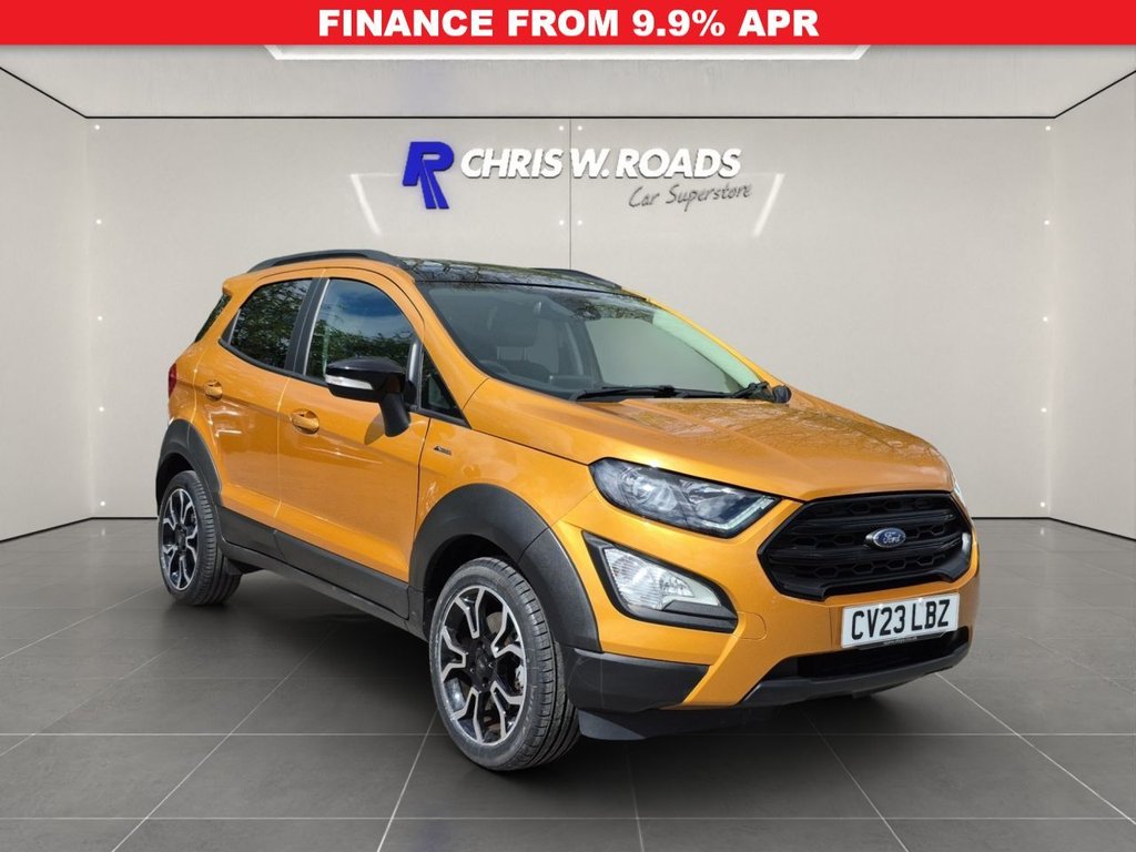 Insurance Group 13, 1 Previous Owner, With only 9116 miles on the clock, this 2023 Ford EcoSport T Active represents an exceptional find. This one owner vehicle boasts a full dealership service history, ensuring its impeccable provenance. The Euro 6 compliant 1.0L petrol engine offers an impressive fuel economy of 46 mpg, making it an economical choice. Its MOT is valid until March 2027, providing peace of mind for the foreseeable future. The Active trim level is enhanced with the X Pack, which includes keyless entry and a premium branded sound system. Further enhancing your driving experience are automatic headlights and rear parking sensors, complemented by a rear view camera pack for effortless manoeuvring. Inside, youll find the Ford SYNC 3 navigation system featuring an 8in touchscreen with Android Auto and Apple CarPlay compatibility, keeping you connected and informed. The low CO2 emissions further highlight this EcoSports efficiency and environmental consideration, setting it apart from many other vehicles in its class. Comes with 1 Ford Service carried out March 25 at 5,680 miles and it has 2 Keys. See below for its full list of features. Book today to view and test drive. Open 7 days a week. All part exchanges welcome. Please ask for details of our finance and extended warranty options, subject to status, Ts and Cs apply. ** You can reserve a car without any obligation to actually buy it by clicking on the green "Reserve Today" button on our website page all we ask is for a fully refundable £99 holding deposit ** ** We offer Nationwide Delivery on most cars, so you can easily buy a car without visiting us ** ** We have built our reputation on nearly 50 years of Trust & Customer Service ** Please see our muchvalued, genuine 5* reviews on Google, Autotrader & Facebook ** ** We are open Monday to Friday 9am 6pm, Saturday 9 5 and Sunday 10 4 ** Please call us first on 01773 743333 if you are travelling from out of our area **.XPack, Ford SYNC 3 Navigation with 8in Touchscreen, Rear View Camera Pack, Ford SYNC Bluetooth Connection with Voice Control, Cruise Control, Electronic Automatic Temperature Control EATC, Rear Parking Sensors, Quickclear Heated Front Windscreen, 17in Alloy Wheels, AutoDimming Electrochromic RearView Mirror, Drivers Seat Height Adjustment, Driver Seat Manual Rotary Knob Lumbar Support Adjustment, Electric Front and Rear Windows , Leather Steering Wheel with Remote Audio Controls, Centre Console Sliding Armrest, Centre Console Cup Holder with Chrome Accent, Sensico Gear Shift Gaiter, Sensico Handbrake, Steering Column Rake and Reach Adjustment, Trip Computer, Rear Seat 6040 Split Folding Seats, Adjustable Boot Load Floor, Load Compartment Lights, Black Body Styling Kit, LED Low Beam Headlights, Automatic Headlights, Automatic Front Wipers with Rain Sensor, Privacy Glass, Electrically Operated Door Mirrors , LED Daytime Running Lights, Front Fog Lights, Headlight Levelling Control, Black Roof Rails, High Mounted Brake Light, Luxe Yellow, Agate Black Roof and Mirrors , AntiLock Braking System ABS with Electronic Stability Control ESC, ESP Electronic Stability Programme with Hill Launch Assist, TSR Traffic Sign Recognition, EPAS Electric Power Assisted Steering, Tyre Pressure Monitoring System, ISOFIX Mounting Provision for Child Seats , Remote Central Locking, Thatcham Category 1 Alarm with Volume Sensing and Perimeter, Engine Immobiliser, IPS Intelligent Protection System, Driver and Front Passenger Airbags , Drivers Knee Airbag, Curtain Airbags