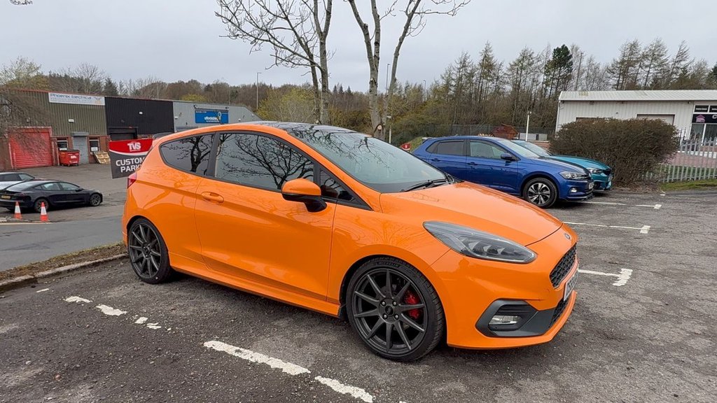 Glasgow2019/69 FORD FIESTA 1.5T EcoBoost ST Performance Edition Hatchback 3dr Petrol Manual Euro 6 3 Former Keepers 61k Miles 2 Remote Keys Deep Orange Paint with Charcoal Black Half Leather Interior Performance Edition with factory LSD, Coil over Suspension and Lightweight 18" Alloys Ford main dealer and independent garage service history just serviced for sale fresh 12 months MOT with no advisories Platinum warranty full 12 months AA roadside assistance also included. Milltek gpf back exhaust system with cerakote tips and milltek gpf delete. Stage 3 airtec intercooler, Pro alloy stage 3 induction kit with orange hoses, Mountune throttle elbow, Mountune short shifter. Airtec torque mount, Auto watch ghost II immobiliser and tracker Full 12 months MOT! Platinum warranty included! 12 months AA breakdown cover free of charge! Autotrader Highly Commended Dealer 2018/19/20/21/22/23/24/25 AA Approved Dealer 2017/18/19/20/21/22/23/24/25 CarGurus Top Rated Dealer 2018/19/20/21/22/23/24/25 We are close to many local bus and train links. The nearest train station is Hairmyres which is on the East Kilbride line, if possible we will collect you if arranged by prior appointment. We have signed up to the AA Dealer Promise which means you are in safe hands dealing with us as an AA partner! All cars are provided with an AA history check, a minimum of 9 months MOT on all cars and 12 months AA breakdown cover or member upgrade as well as other exclusive AA benefits! Finance available?! Longer warranty options available!? Poor Credit No Problem!? Part Exchange welcome with or without MOT?! Price checked to ensure best value!? Over 50 cars in stock!? Over 97% of our customers rate us 5 stars!.18in Alloy Wheels ST Ford Performance Magnetite Finish, 4.2in TFT Instrument Cluster Screen, Air Conditioning Electronic Automatic Temperature Control EATC, Airbags Driver and Front Passenger, Airbags Front Side Impact, Airbags Front and Rear Side Curtain, AntiLock Braking System ABS with Electronic Brake Force Distribution EBD, Automatic Rain Sensing Wipers and AutoDimming Rear View Mirror, B and O PLAY InCar Audio Premium Sound System with Ford SYNC 3 Navigation System and FordPass Connect Embedded Modem, Body Colour Bumpers, Centre Console with Armrest and Illuminated Cupholders, Comfort Pack, Courtesy Light Front Map Light and Rear Overhead LED, Cruise Control, Door Handles Body Colour, Door Lever Chrome Finish, Door Mirrors ElectricallyOperated and Heated PowerFoldable with Integrated Side Indicators Body Colour Housings and Puddle Lights, Driver Seat with Manual Height Adjust, Drivers Seat Lumbar Support and Passenger Seat Lumbar Support, Dual Tone Horn, EPAS Electric Power Assisted Steering, Electric Windows Front, Electronic Stability Programme ESP with Hill Start Assist, Emergency Brake Warning Automatic Hazard Warning Lights, Floor Mats Front and Rear with Grey Stitching, Ford EasyFuel Capless Refuelling System, Ford KeyFree System, Ford Performance Coilover Suspension Lowered 10mm Rear15mm Front, Front Fog Lights with Cornering Function, Full LED Headlamps, Glovebox Illuminated, Heated Front Seats and Heated Steering Wheel, IPS Intelligent Protection System, LED Daytime Running Lights, Large Body Coloured Rear Spoiler, Leather Handbrake Lever with Grey Stitching, MyKey, NCAP Pack, Overhead Console Sunglasses Holder, Parking Distance Sensors Rear, Quickclear Heated Windscreen, Rear Fog Lamps, Rear Lights LED Night Signature, Rear Privacy Glass, Rear Seat 6040 Split Back and Cushion, Rear View Camera, Red Brake Calipers, Remote CentralDouble Locking, ST Badge Front and Rear, ST Flat Bottom Leather Steering Wheel with Red Stitching, ST Performance Pack, ST Side Skirt Body Mouldings Body Colour, Seat Belts with Blue Detailing, Seats ISOFIX Mounting Provision for Child Seats, Selectable Drive Modes, Sports Pedals, Sports Tuned Suspension, Steering Column Rake and Reach Adjustment, Tailgate WashWipe, Thatcham Category 1 Alarm, Trip Computer, Tyre Pressure Monitoring System TPMS, Tyre Repair Kit, USB Connection x2, Ultra Low Rolling Resistance Tyres, Unique ST Gear Knob with