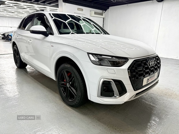 Lisburn1 Previous Owner, 2021 Audi Q5 40 TDI SLine Quattro STronicJust 44k miles from newFull service historyQuattro all wheel driveSTronic automatic gearboxSLine styling and interior package? Half leather / alcantara interior? Heated seats? Digital virtual cockpit? Satellite navigation & widescreen infotainment? Bluetooth phone & media? Cruise control? Front & rear parking sensors with camera? Factory privacy glass? Upgraded alloy wheels? 12 months warranty cover includedVarious finance options available£27,950