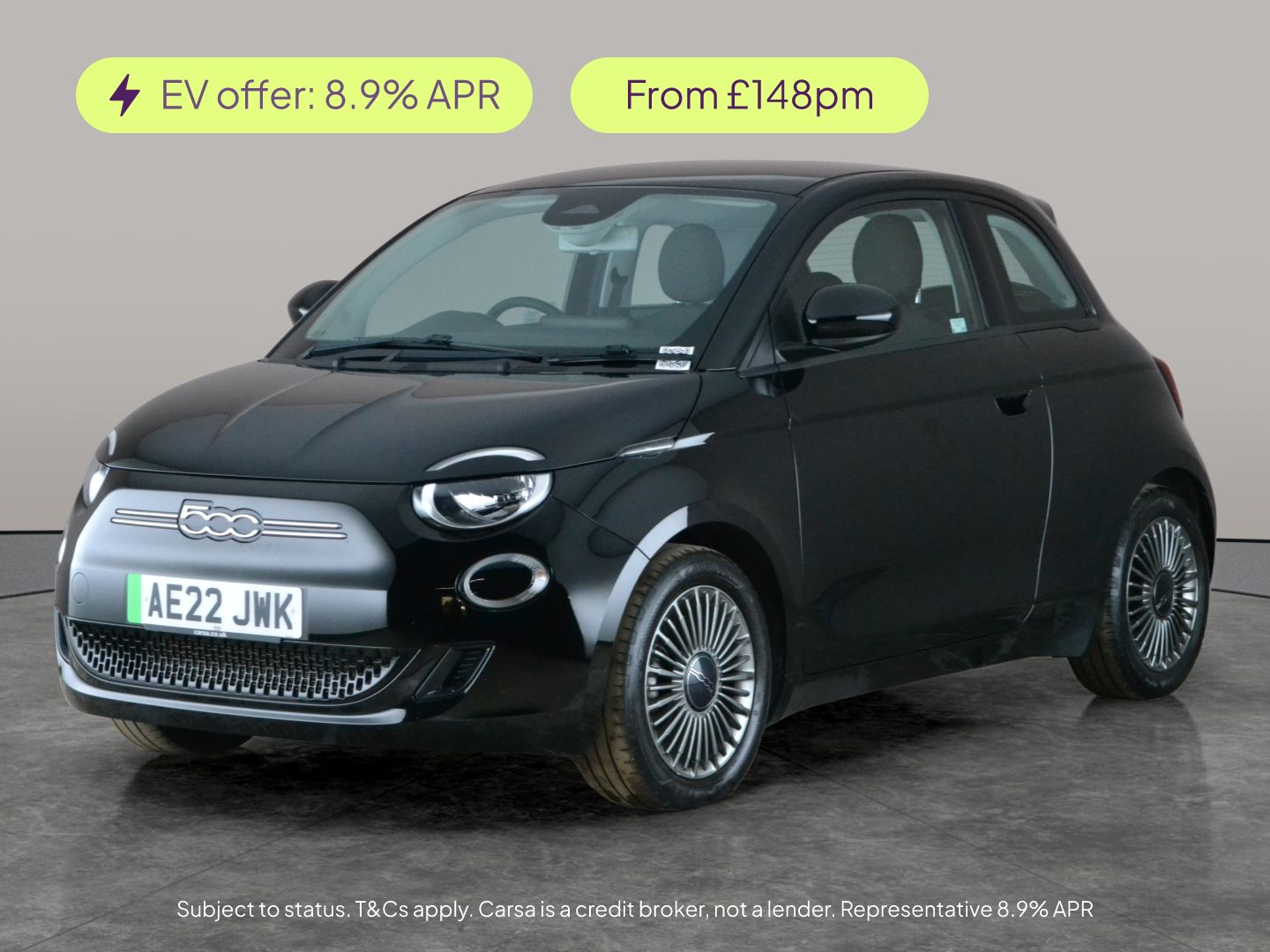 Insurance Group 17, 0 Previous Owners, Experience allelectric fun with this chic black Fiat 500e Hatchback. Glide through the city with advanced features like LED headlights, a stateoftheart digital display, and effortless keyless start. Enjoy seamless connectivity with Bluetooth audio streaming and sat nav, while smart tech like lane departure warning and traffic sign recognition add peace of mind. Relax in comfort with digital climate control and cruise control, all rolling on stylish 16in alloy wheels. The Fiat 500e makes every drive a joy. 2 services recorded, last serviced on 08/04/2026 at 22,334 miles. MOT to 25/03/2027. Visit our website for service history, online valuation, full vehicle specification plus multiple images. This vehicle is VAT qualifying. Any feature/option specified here is from 3rd party data. We cannot guarantee the accuracy of any specification supplied by a 3rd party. We recommend that you physically check the specification of the vehicle on site prior to purchase. This information does not form part of the buying contract. Terms & Conditions apply. We have over 2,000 cars available from our 10 national branches, check our website to see all our stock. Our Trustpilot rating is 4.4/5 with over 9,000 reviews.