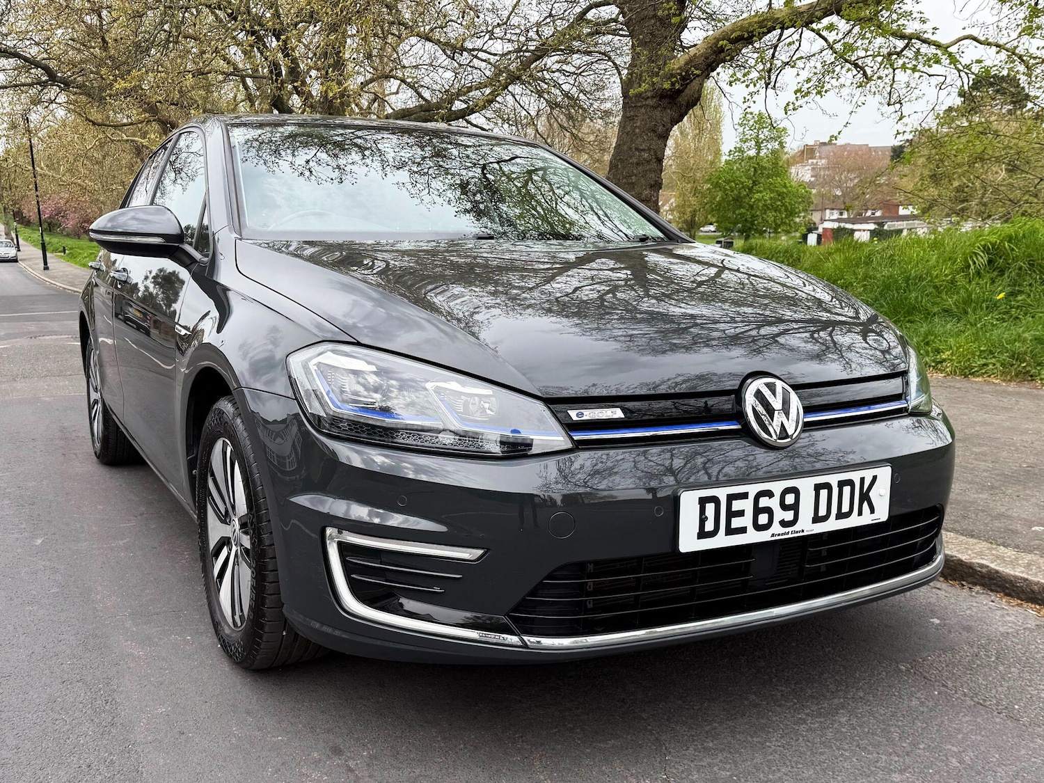 Croydon2 Previous Owners, This 2019 Volkswagen e Golf presents an exceptional opportunity with its remarkably low mileage of just 20,000 miles, a clear vehicle history check, and a comprehensive specification. As an electric vehicle, it boasts a 36 kWh battery offering a maximum range of 144 miles when new. Charging is convenient, with a full charge at home using a 7kW charger taking approximately 5 hours and 20 minutes, while rapid public charging can achieve 80% capacity in as little as 40 minutes. This e Golf comes equipped with the Discover Navigation Pro Touch Screen system, Park Assist for effortless parking, and a Dusk Sensor for automatic headlights. The Convenience Pack and Adaptive Cruise Control further enhance the driving experience.The generous boot space in this Volkswagen e Golf provides ample room for your shopping or luggage, making it a practical choice for everyday use. Its low mileage for a 2019 model suggests it has been well cared for and offers a significant advantage over other vehicles of a similar age. The combination of its electric powertrain, advanced navigation, parking assistance, and adaptive cruise control ensures a smooth, efficient, and enjoyable journey, setting it apart from other electric hatchbacks on the market.
