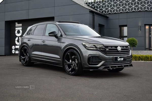 Ballymena2 Previous Owners, 2020 Volkswagen Touareg 30 TDI V6 Black Edition in Silicon Grey covered 71k Miles. Comes with a Full Service History & 2 Keys.Panoramic SunroofGloss Black Aero KitBlack PackAir SuspensionVienna Leather Ergo Comfort SeatsMemory Pack Digital Cockpit360 Parking Cameras with Park AssistElectric Deployable TowbarKeyless EntryLED headlights with High Beam AssistSatNavHeated SeatsFront & Rear Parking SensorsBluetoothHeated MultiFunction Steering WheelPrivacy Glass etcFitted with Brand New 23" Upgraded Alloys (optional extra upgrade £1695)