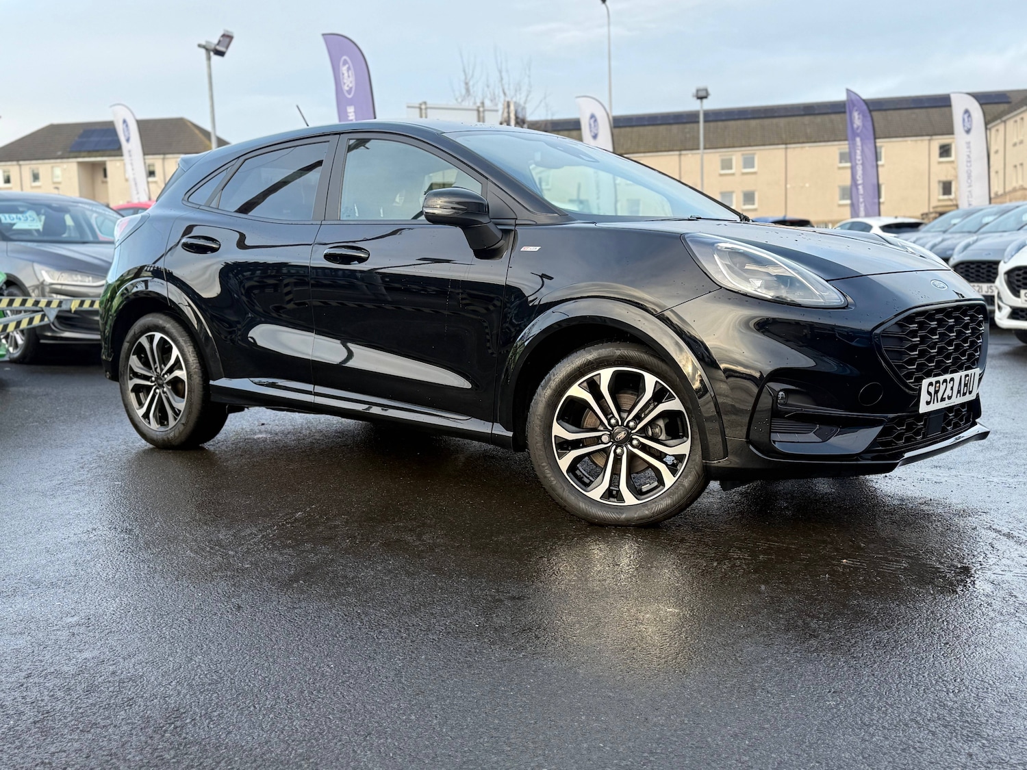 DundeeInsurance Group 12, 0 Previous Owners, 3 rear seatbelts, Autonomous emergency braking, Child safety lock, Electronic stability control (ESC) and hill start assist, Pedestrian/cyclist detection and postcollision braking, Pre collision assist system, Tyre pressure monitoring system (TPMS), Cruise control with Intelligent speed assist, Driver impairment monitor, Emergency call service, Ford easy fuel, Lane keeping aid with lane departure warning, Manual tailgate, Power assist steering, Power start button, Rear parking sensor, Selectable drive modes(Normal, sport, Eco, trail, slippery), Speed sign recognition, Automatic headlights with auto high beam, Automatic rain sensing wipers, Body coloured door mirrors, Body coloured roof, Large body colour rear roof spoiler, LED rear lamps, Power foldable heated door mirrors with puddle lamps, Projector headlamps with LED day time running lights and front fog lamps, Quickclear heated windscreen, Rear side wing doors, Rear wiper, Solid paint, STLine body styling kit with unique grille, Third brake light, 3 seat bench in 2nd row, Centre console with armrest and stowage, Ford megabox extended bootspace, Front and rear head restraints, Front floor mats, Manual 2 way passenger seat adjustment, Manual 4 way driver seat adjust with lumbar adjustment, Manual air conditioning, Single front passenger seat, ST Line cloth trim with red stitching, STLine flat bottomed sensico leather steering wheel with leather handbrake and aluminium gear knob, Ford SYNC 3 navigation pack Puma, Sport suspension, Thatcham alarm, Tyre inflation kit