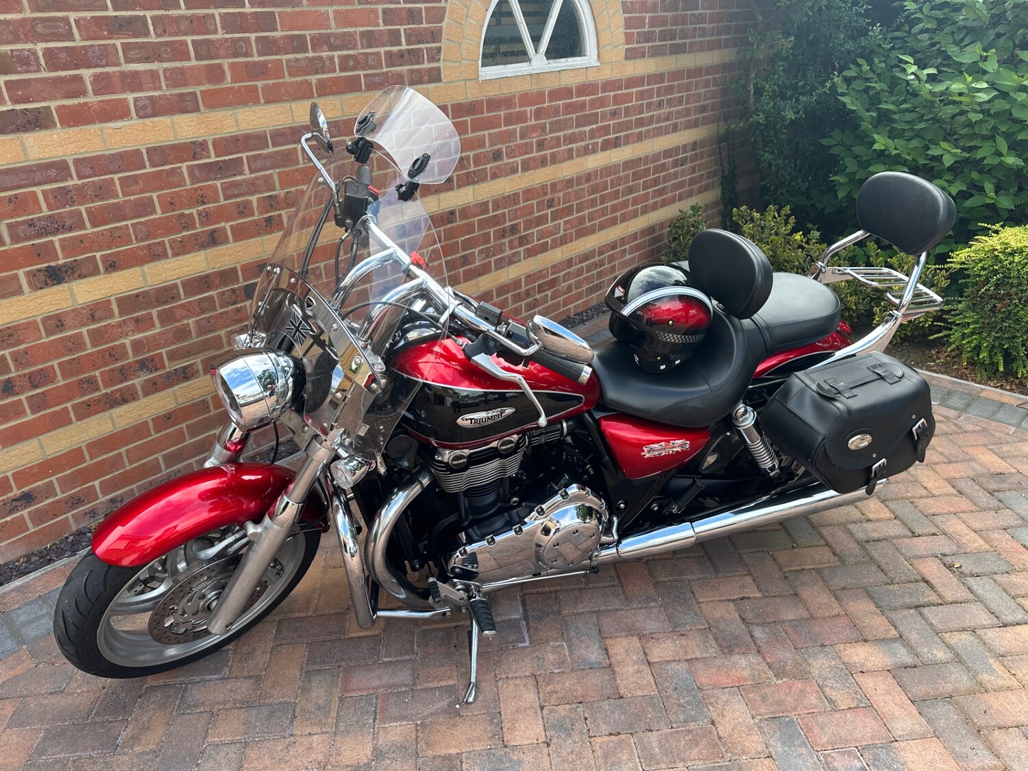 2010 Triumph Thunderbird 1600 finished in cranberry red and phantom black. The bike has a huge specification which includes riders and passenger back rests, Triumph leather panniers, touring screen, engine crash bars, luggage rack and also comes with these very expensive alternative extras, short pipes, single seat with rack and passenger seat, and comes with a new MOT on date of sale, a full service history and belt change in 2024 and is a real credit to its previous owner. Part exchange car or motorcycle or anything interesting. UK Mainland delivery £199, please telephone for an appointment to view.