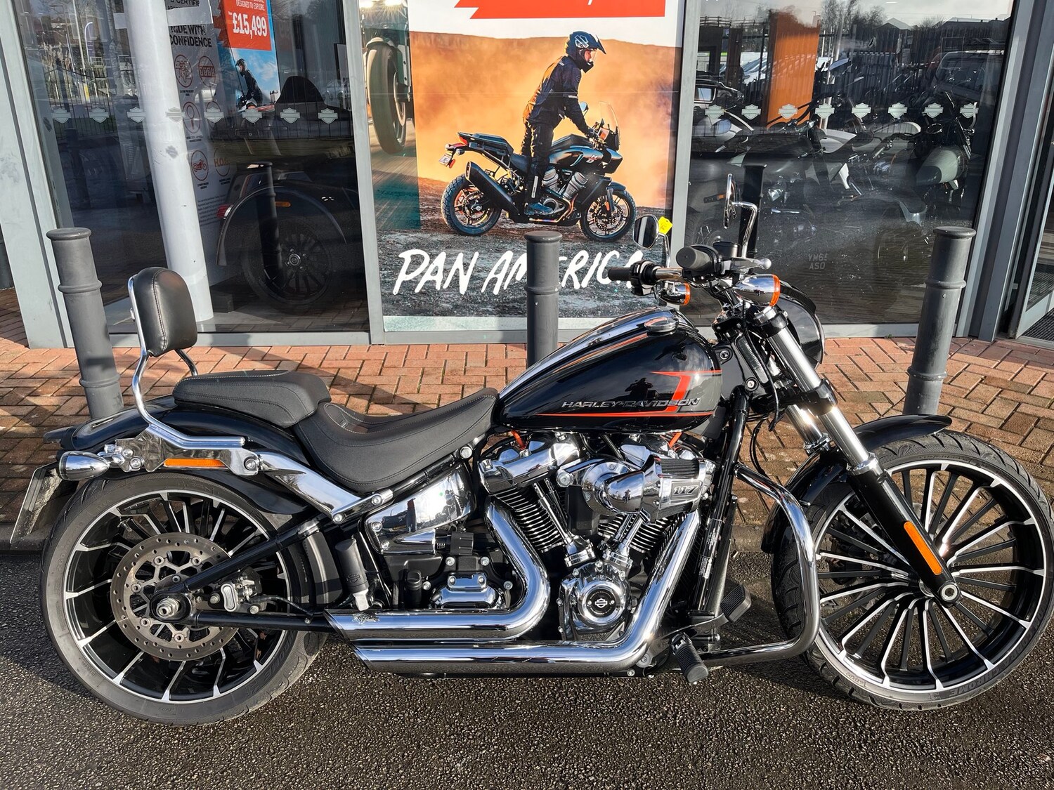 Chesterfield2023 HarleyDavidson Breakout returned to the lineup brawnier and brighter than ever before. Now powered by the massive MilwaukeeEight 117 VTwin, this long, lowslung cruiser is designed to turn heads at a standstill and leave everything else behind at the light.Pure Milwaukee MuscleThe 2023 Breakout is defined by the pinnacle of HarleyDavidson factoryinstalled displacement.TorqueHeavy Performance: The 117ci (1,923cc) engine delivers a brutal 123126 ftlb of torque and 101102 HP, providing instant passing power and a signature ""stoplightdrags"" kick.Enhanced Intake: Features the highperformance Heavy Breather intake with a forwardfacing exposed filter element to maximize airflow and performance.Modern Gear: Comes standard with Electronic Cruise Control and features an optional Traction Control system for added confidence in varying conditions.