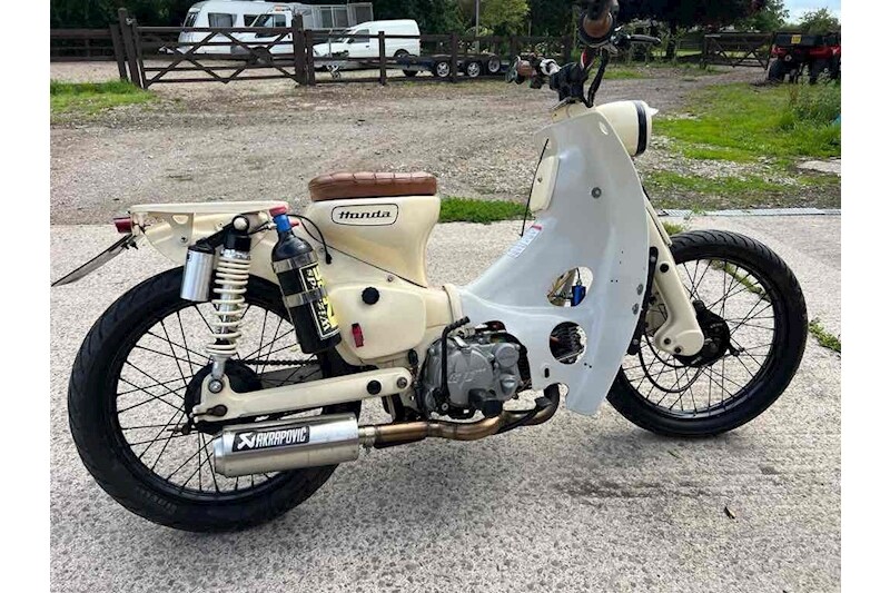 This Cub is simply Gorgeous, her name is Enid and she was originally a Honda C90 Step Through built in 1967, she was converted around 5 years ago to her current guise, fitted with a 160cc Pit Bike Engine, 4 speed gearbox, she is fully road worthy but MOT and Road Tax Exempt.