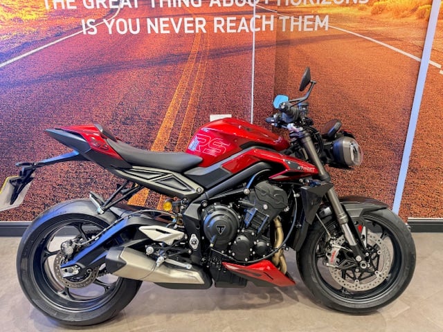 WoburnWe supplied this new to a local exhaust manufacturer so they could design a new system for the Street Triple, as such it has been dry stored and not ridden beyond our road test from new. Warranty is valid until June 2027, though this can be increased by 1 or 2 years up until December 2026. We will be including the labour for the first service as we do with new bikes, so you will need to bring it back for its running in service at 600 miles. . Visit our Triumph website for further details. Pure Triumph is part of Grange, one of the fastest growing franchised vehicle retailers in the UK. We offer competitive part exchange valuations and will do all that we can to ensure you leave our nationwide dealerships as a happy guest. On our website, you can find a choice of the latest new Triumph offers and used bikes from a variety of manufacturers. We recommend booking in advance so we can ensure the bike is available and to avoid disappointment. CLICKCOLLECTDRIVE: Reserve online today and collect it safely at our dealership or we'll deliver to your door. Come and visit us at Triumph Woburn, George St, Woburn, Milton Keynes MK17 9PY. Open Monday to Friday 9am to 6pm. Saturday 9am to 5pm and Sunday Closed. https://www.puretriumph.co.uk