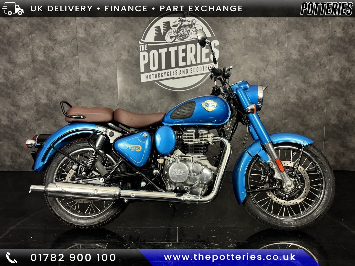 Great YarmouthThe new 2026 colour! in stock now..The new Classic 350 traces its bloodline to the 1950 Royal Enfield G2and this perfectlyproportioned silhouette has been in fashion ever since. In its gleaming new avatar, the Classic continues to represent an era in which motorcycles had impeccable road manners and unforgettable style. From burnished bronze to desert blue, this thoroughbred motorcycle is now available in seven striking new colourways inspired by its past, present and future.Nationwide delivery available.Part exchange welcome and finance can be arranged over the phone or in store.Over 300 New and used bikes in store at our huge 20000 square foot showroom based in Stoke on Trent just off junction 15 or 16 of the M6.Buying from a distance? Ask for a detailed video walkaround via WhatsApp on 07594817630 so you can inspect the bike before purchase.01782 900100 or infothepotteries.co.ukWe offer home delivery with a 7day distanceselling return period, in line with the Consumer Rights Act.Returns must be as delivered, in the same condition as supplied, and with no additional mileage. Delivery charges are nonrefundable, and return transport costs are the buyers responsibility.