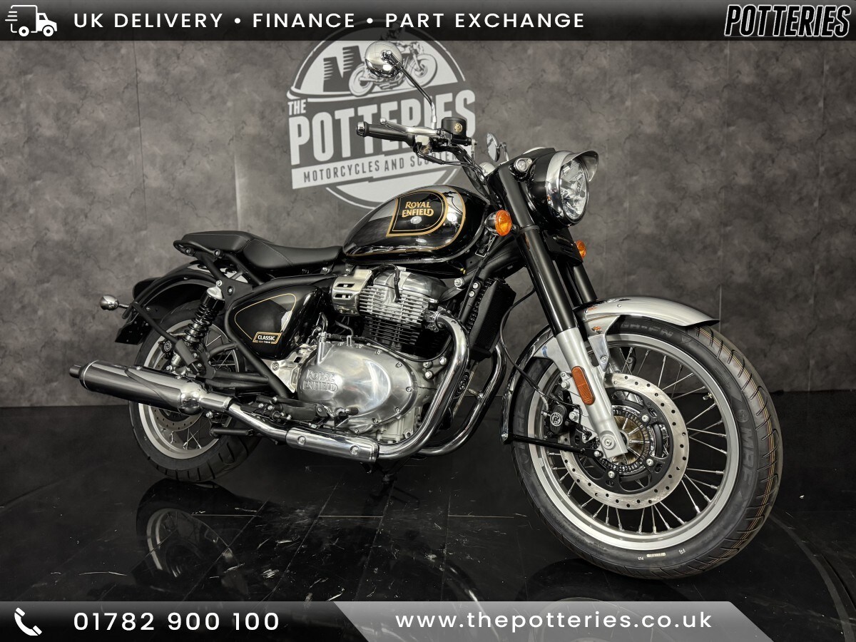 Great YarmouthThe all new Classic 650 utilises the acclaimed twin 650 engine whilst retaining the purest form of Royal Enfield DNA. With it's bespoke craftsmanship, the Classic has represented the very culture of classic automotive design, aesthetics and engineering. The liveries of the Classic 650 bring back the much loved colour schemes of the Classic 500 along with a fresh take on the legacyNationwide delivery available, Part exchange welcome and Finance arranged over the phone or in store.Buying from a distance? Why not ask for a video walk round via WhatsApp 07594817630. We can then deliver direct to your door with a seven day money back guarantee. Over 200 New and Used bikes in store in our stunning 20'000 Square foot showroom based Just off the M6 in Stoke on Trent. 01782 900100