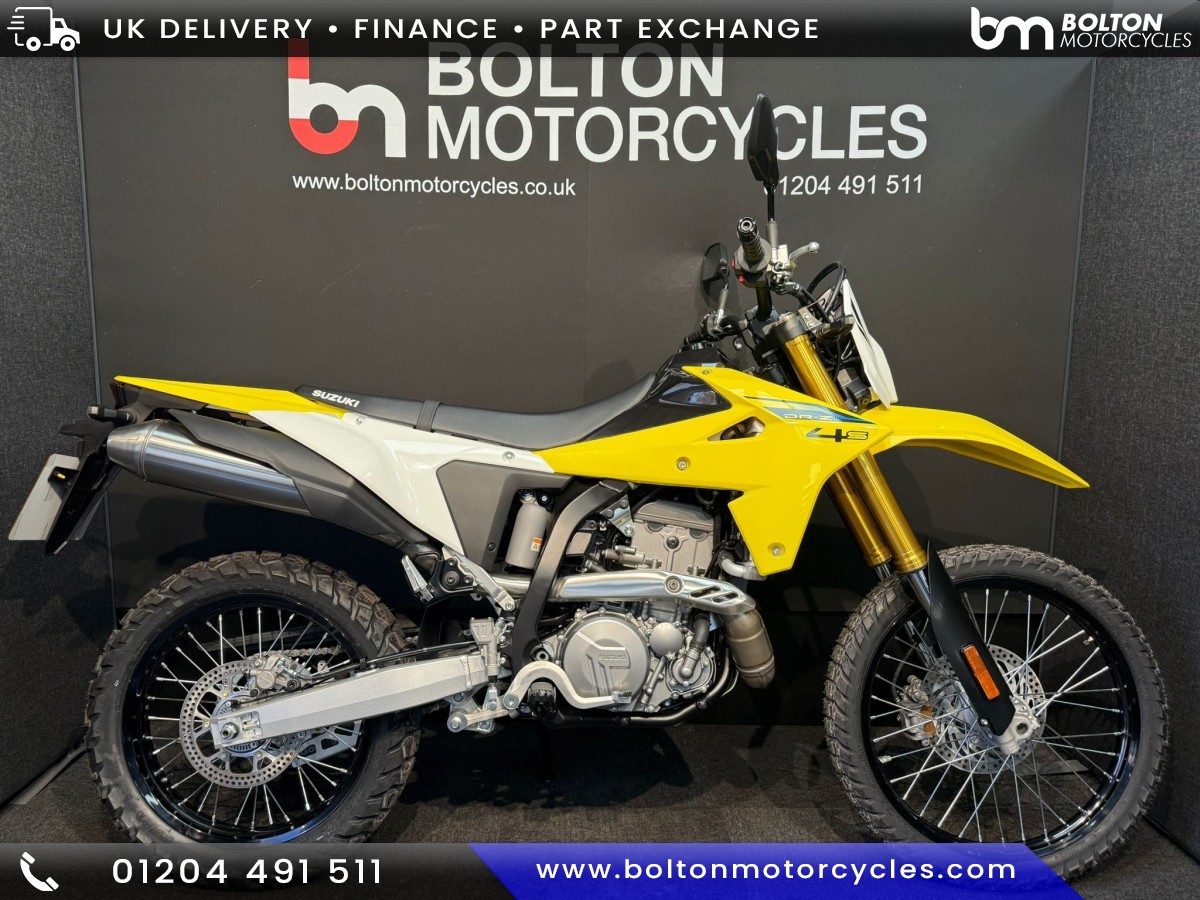 Great YarmouthEquipped with a punchy, new singlecylinder engine tuned for lowdown torque and responsive power delivery, a new chassis for superior handling, and a cuttingedge electronics package tailored for offroad adventures, the allnew DRZ4S is ready to turn your world into your playground. Available September 2025.For extra pictures or a video of this bike give our team a call on 01204 491511 or drop us a WhatsApp message on 07541 926 738 where they will be more than willing to help. Low rate HP and PCP Finance quotes are available upon request.... phone now for further details. Partexchanges are welcome. We are open 6 days a week with a friendly relaxed atmosphere. Enjoy free hot drinks whilst browsing around our range of over 250 motorcycles new and used. All vehicle are HPI checked and will receive a full predelivery inspection and prep... Not local? no problem, we can deliver to your door!
