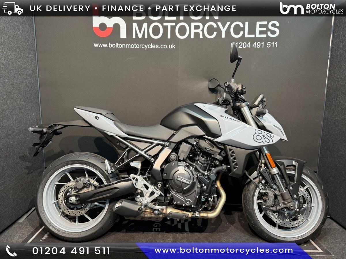 Great YarmouthSUZUKI GSX8S Now Available At £6,799 FOR GREY ONLY. £7,199 FOR BLUE/BLACK/WHITE 2023 MCN Naked Bike Of The Year!Work hard, play harder. The allnew GSX8S features a torquey 776cc, 270 crank, parallel twin that delivers exciting performance and an exhilarating soundtrack throughout the rev range. A 5 TFT colour dash, bidirectional quickshifter and aggressive design make for a refined yet thrilling ride on every journey. Huge 67.2 Miles Per Gallon. For extra pictures or a video of this bike give our team a call on 01204 491511 or drop us a WhatsApp message on 07541 926 738 where they will be more than willing to help. Low rate HP and PCP Finance quotes are available upon request.... phone now for further details. Partexchanges are welcome. We are open 6 days a week with a friendly relaxed atmosphere. Enjoy free hot drinks whilst browsing around our range of over 250 motorcycles new and used. All vehicle are HPI checked and will receive a full predelivery inspection and prep... Not local? no problem, we can deliver to your door!