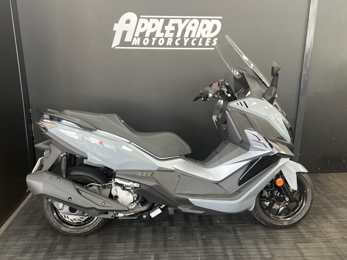 Great YarmouthThe Cruisym 300 delivers a maximum power of 19.1 KW. This feature allows you to tackle even the longest journeys in total tranquillity and without the thought of consuming too much petrol. Digital instrumentation and traction control. The maximum speed it is able to reach is around 140 Km / h, and the acceleration start allows you to decisively overtake the other slower vehicles that can be found on the motorway or ring road. The braking system present in the CruiSym can count on a 260 mm front disc and a 240 mm front disc equipped with an ABS system. The 41mm telescopic front fork and adjustable rear suspension ensure maximum stability even when tackling rough roads. The driving comfort offered by the CruiSym is another aspect that makes this scooter the right choice for those looking for a performing vehicle that is easy to drive at the same time. The saddle is wide and wellcushioned, as is the area reserved for the passenger. The platform with three different portions for the feet allows you to choose the most suitable one in all circumstances, allowing you to always remain very comfortable even when you are in the saddle for several hours. This is also thanks to the 40 inclination between the footrest and the leg shield back plate. The sporty aspect is highlighted by the bold line of the front where the LED lights and the heightadjustable windscreen stand out, allowing you to choose the best position according to your needs. The compartment under the saddle can accommodate a fullface helmet and other items. The saddle opens via a convenient button on the handlebar, while there are two large compartments in the rear shield, one of which is equipped with a lock and USB socket to power small electronic devices. The futuristic instrumentation is a mix between analogue and digital and makes the CruiSym a scooter in step with the times also in this respect.Buy with confidence from Appleyard Motorcycles: West Yorkshire's leading, multifranchise dealership.Lowrate finance options available with the option of remote funding from home.Nationwide delivery available upon request.Part exchanges are welcomed on any bike.WhatsApp walkaround videos available to send to your mobile.CALL US ON 01535 606311, OR EMAIL: salesappleyardmotorcycles.co.uk