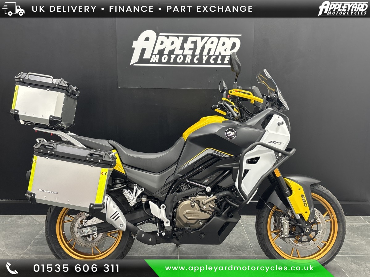 Great YarmouthBrand new QJ Motor SVT650 is now available at Appleyard motorcycle's Call 01535 606 311 for more detailsPrice is including luggage but plus on the road charges .At the heart of the QJMotor SVT 650 lies a powerful DOHC 8v 645cc VTwin cylinder engine ensuring impressive efficiency and performance. With a rated output of 56kW (75 Bhp) 9000rpm and maximum torque of 65Nm 8000rpm, you can expect a thrilling performance that will keep you coming back for more. The Euro 5+ certification ensures that you can embark on your journeys while being environmentally conscientious.The SVT 650s robust engineering includes a 6speed gearbox with a multiplate wet clutch providing smooth and reliable gear shifts as you tackle various terrains. Its chain final drive adds durability and ease of maintenance, making it a trusty companion for long journeys.Safety and stability are paramount, the SVT 650 comes equipped with dual channel ABS hydraulic disc brakes courtesy of Brembo Radial 4 piston calipers biting dual 320mm discs at the front and a single caliper on a 260mm disc at the rear. The telescopic USD front suspension paired with a telescopic coil spring oildamped rear monoshock ensures comfort, control and remarkable handling, even on rugged terrain.Buy with confidence from Appleyard Motorcycles: West Yorkshire's leading, multifranchise dealership.Lowrate finance options available with the option of remote funding from home.Nationwide delivery available upon request.Part exchanges are welcomed on any bike. Whatsapp pictures to 07926 546508WhatsApp walkaround videos available to send to your mobile.CALL US ON 01535 606311