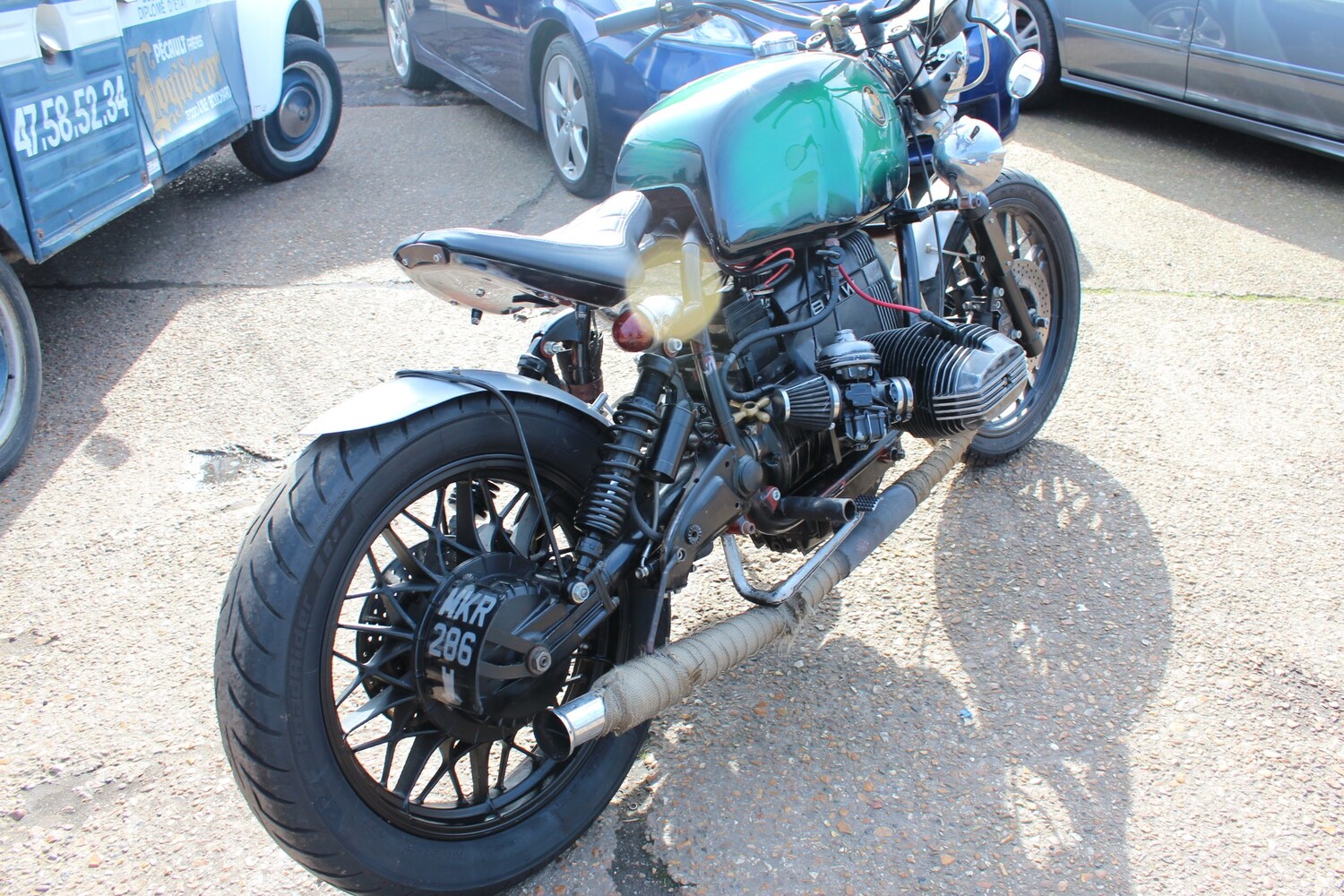 Saint NeotsSO THIS BIKE STARTED LIFE AS A BMW R100RT. IT HAS JUST ONE OWNER FROM NEW AND JUST OVER 20.000 MILES . WE KNEW THE OWNER , HE WAS A LONG STANDING CUSTOMER OF OURS. UNFORTUNATELY. HE HAD NOT USED THE BIKE FOR MANY YEARS AND IT WAS IN A SORRY STATE WHEN WE GOT IT . WE DECIDED TO NOT RESTORE IT BUT TO BUILD A CUSTOM BOBBER OUT OF IT . WE HAVE COMPLETELY DISMANTLED IT AND REPLACED OR REBUILT ALL OF IT . IT PROBABLY TOOK ABOUT A YEAR TO COMPLETE . WE HAVE KEPT THE ORIGINAL PAINT ON THE TANK AS IT HAS WONDERFUL PATINA , THE ENGINE AND GEARBOX ARE ALSO UNTOUCHED AS ON INSPECTION THEY WERE PERFECT. JUST ABOUT EVERYTHING ELSE IS NEW AND FABRICATED TO CREATE WHAT WE THINK IS A REALLY LOVELY AND UNIQUE BIKE . WE HAVE FULL PHOTOGRAPHIC BUILD HISTORY AND THERE IS TOO MUCH TO LIST HERE . WE ARE ONLY SELLING IT AS IT JUST DOESN'T GET USED AND IT REALLY SHOULD BE . LOTS AND LOTS OF TIME AND MONEY HAVE BEEN SPENT ON THIS AND IT REALLY RIDE EXTREAMLY WELL AND BEING AN OLD SCHOOL BMW ITS RELIABLE . GIVE US A CALL IF YOU WANT TO TALK FURTHER ABOUT IT